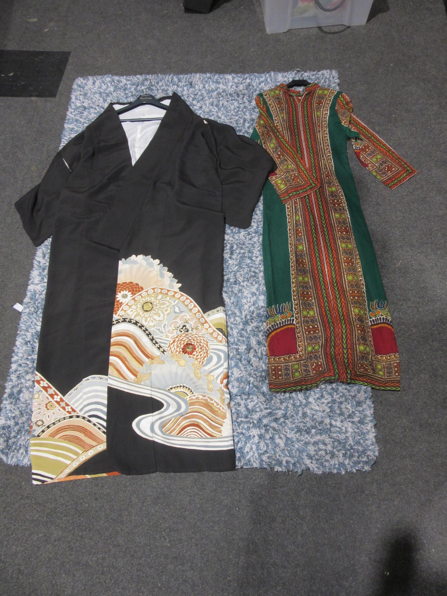 A modern Japanese Kimono and a full length tunic, possibly African (2)