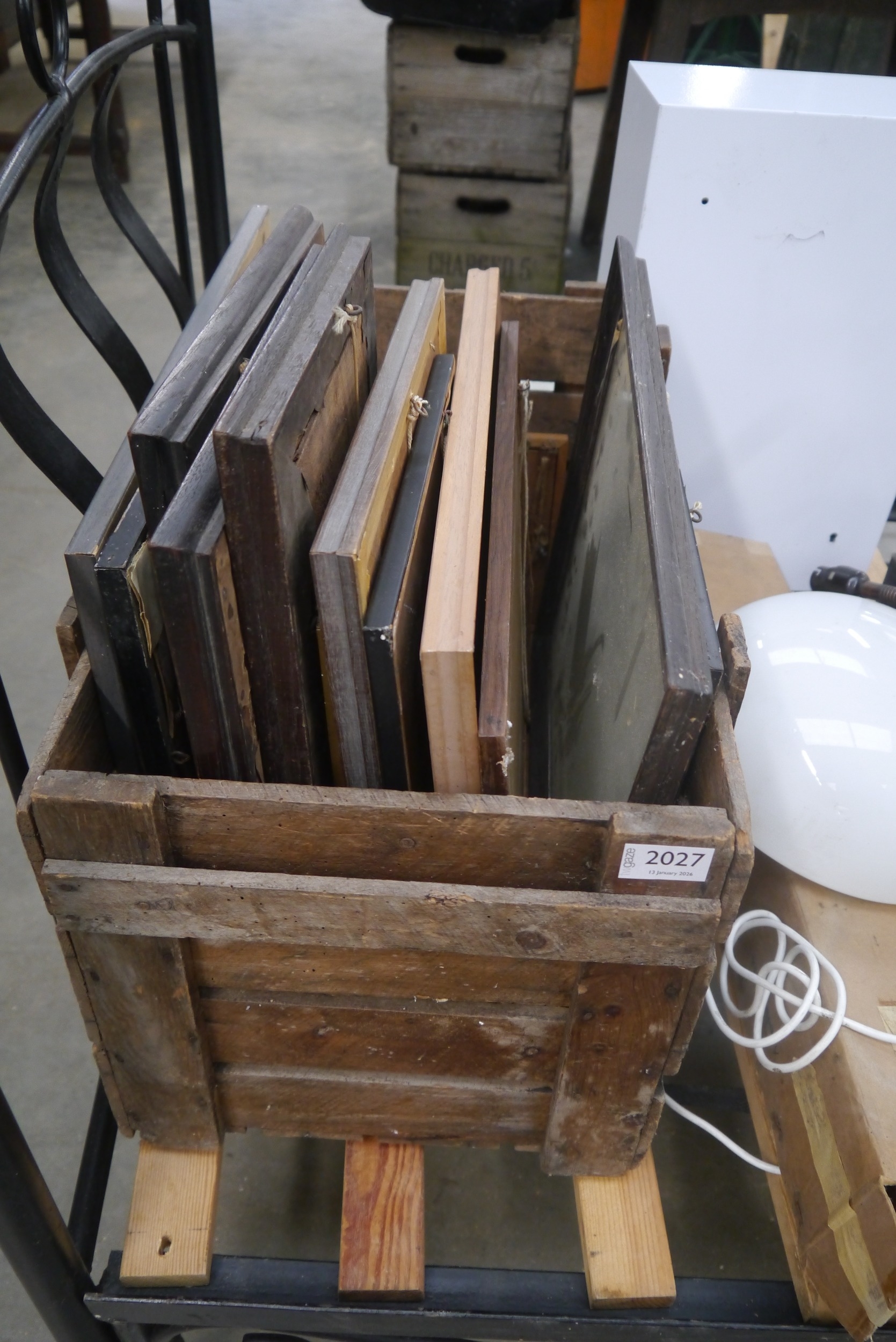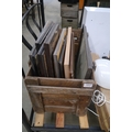 A crate of assorted pictures and prints, oak framed watercolours, London scene pen and inks etc