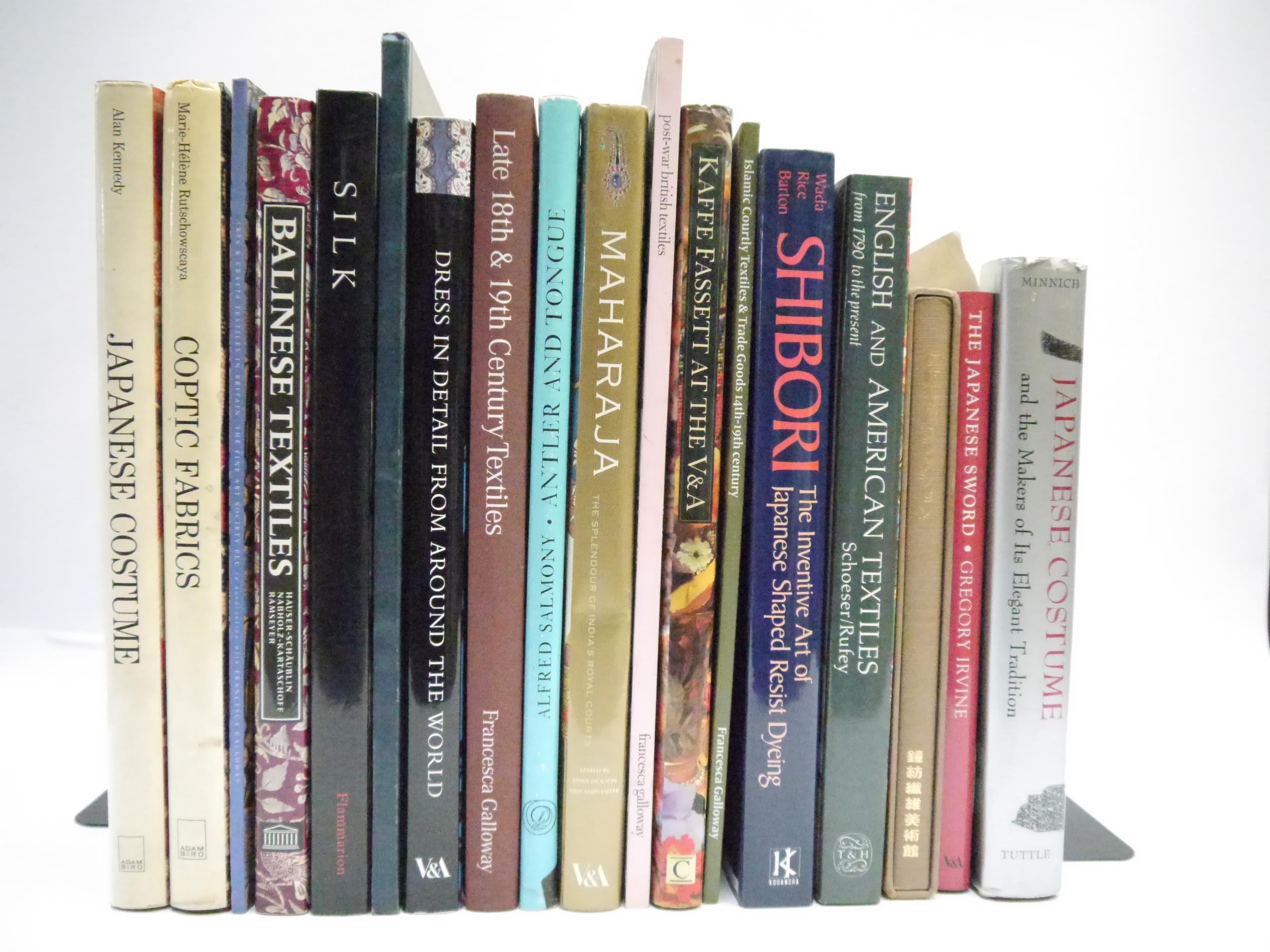 Seventeen assorted volumes on textiles, including Coptic Fabrics, Balinese Textiles, Turkish Textiles and Velvets, Japanese Shibori Dyeing, Kanebo Textiles Collection, one or two others Japanese costume and Japan related etc (17)