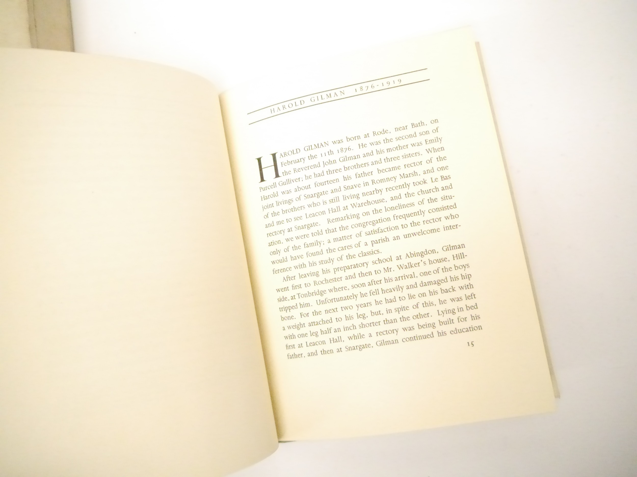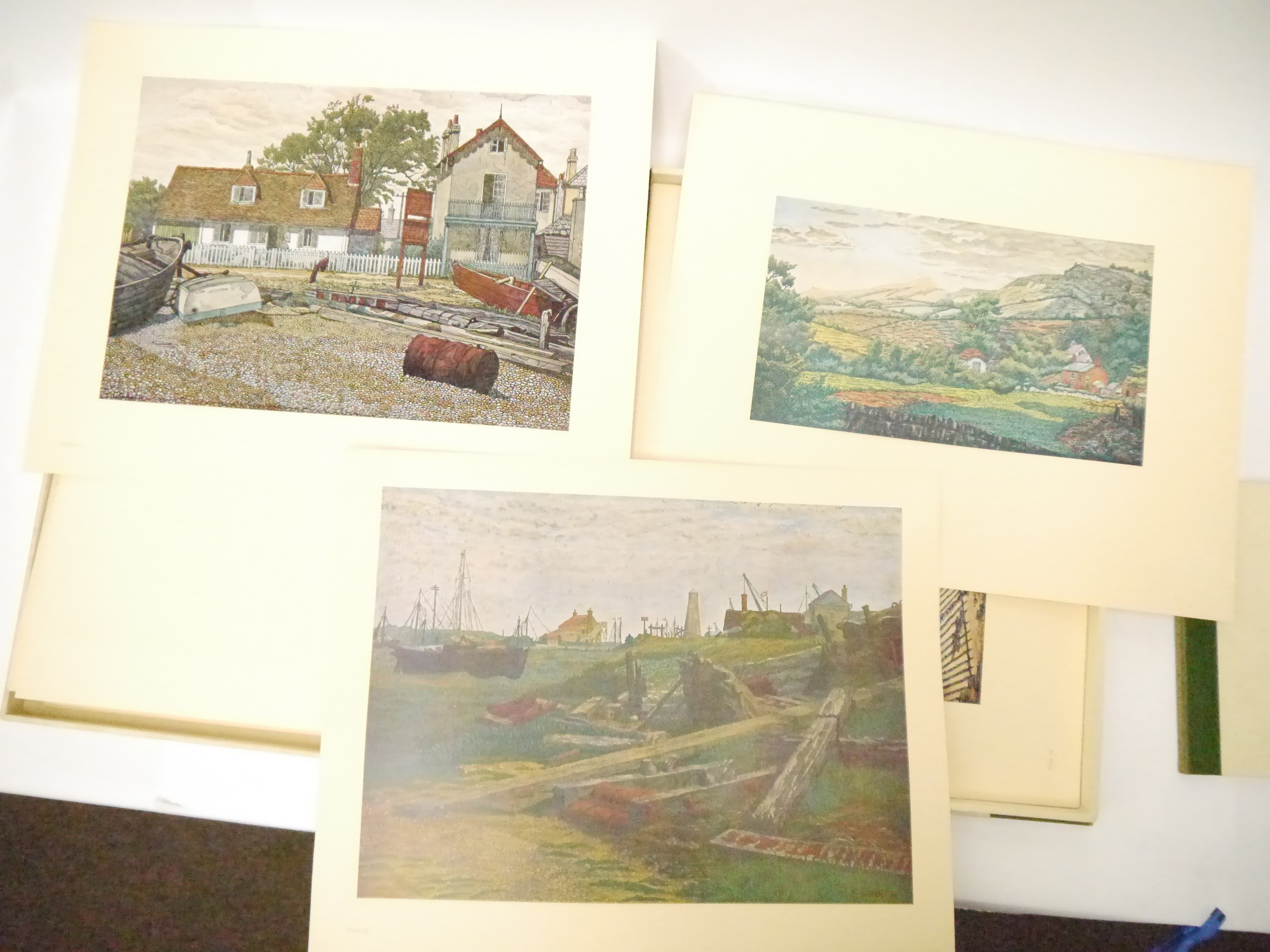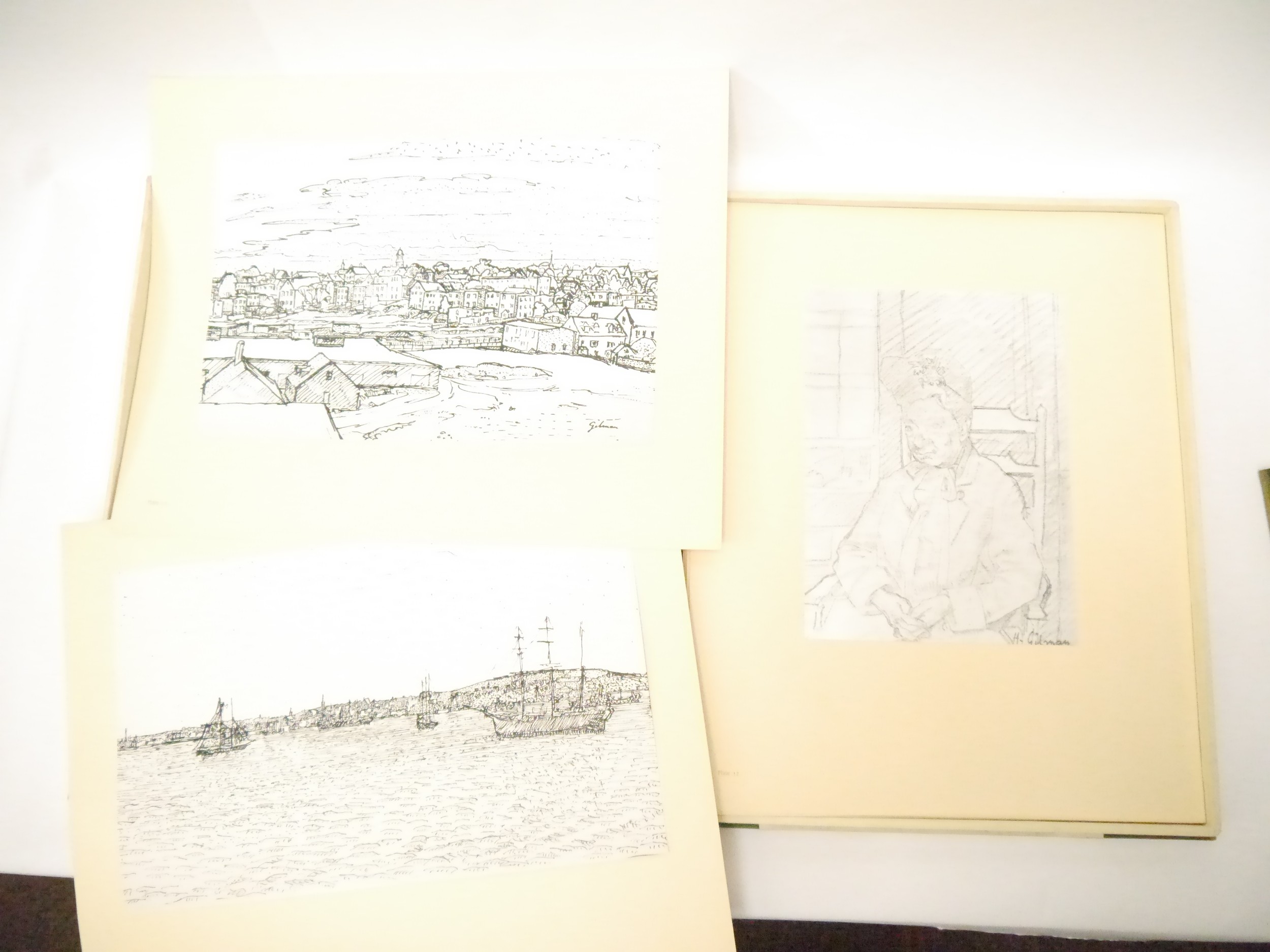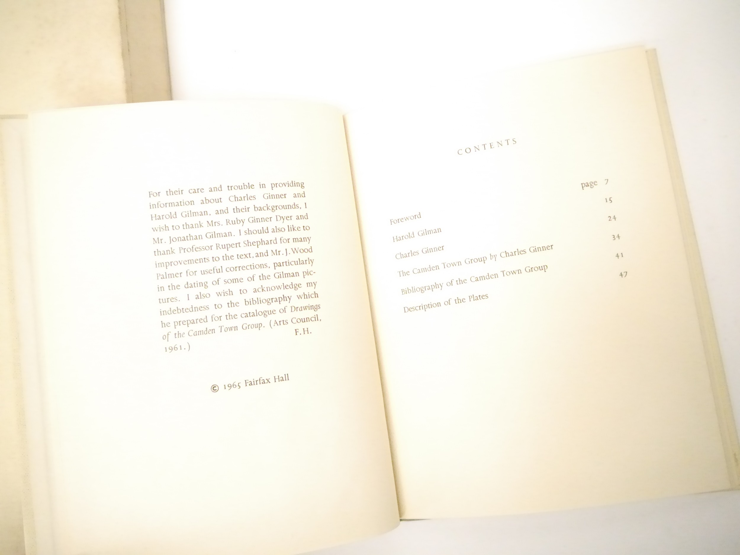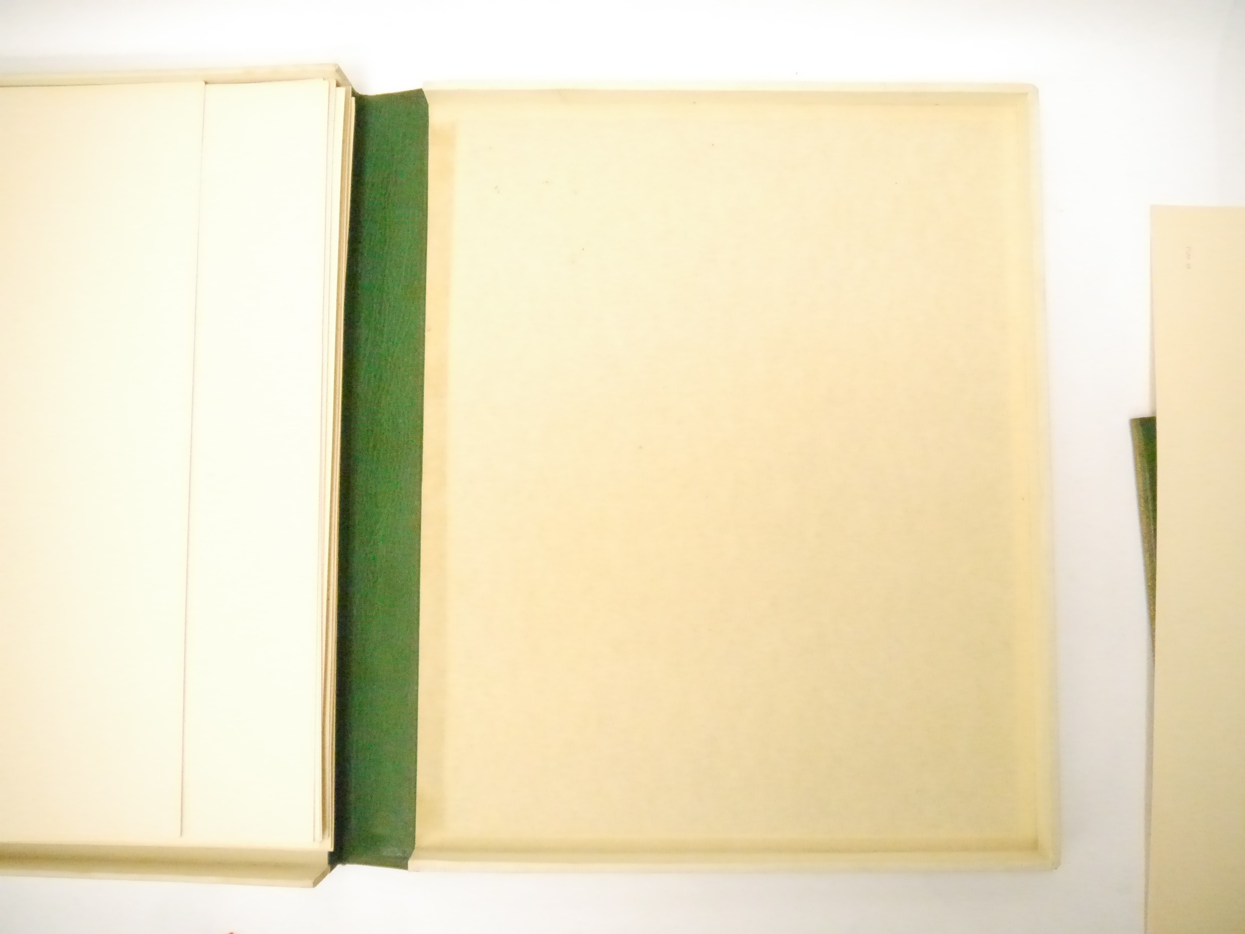(Camden Town Group.) Harold Gilman (British 1876-1919) and Charles Ginner A.R.A. (British 1878-1952): 'Paintings and Drawings by Harold Gilman and Charles Ginner in the Collection of Edward Le Bas', London, Fairfax Hall, 1965, first edition, number 8 of 105 numbered copies only, 36 mounted colour plates after paintings by Gilman or Ginner, printed on a special making of Cowan paper, leaves approx. 51 x 41cm, with uniform title page leaf, limitation/copyright statement verso (title page with toning, leaves of plates with some very minor toning, else generally plates very clean/VGC), text volume 49,[1]pp, foreword by the publisher, essays on each of the artists, another on the Camden Town Group by Ginner, and descriptions of the plates, hand printed by the publisher on Hodgkinson hand made paper, 25 x 19cm, original quarter green morocco gilt over cream buckram, top edge gilt, all housed together in original green quarter morocco gilt portfolio, 54 x 44cm. Formerly from the collection of Denys Sutton (1917-1991), art critic and historian