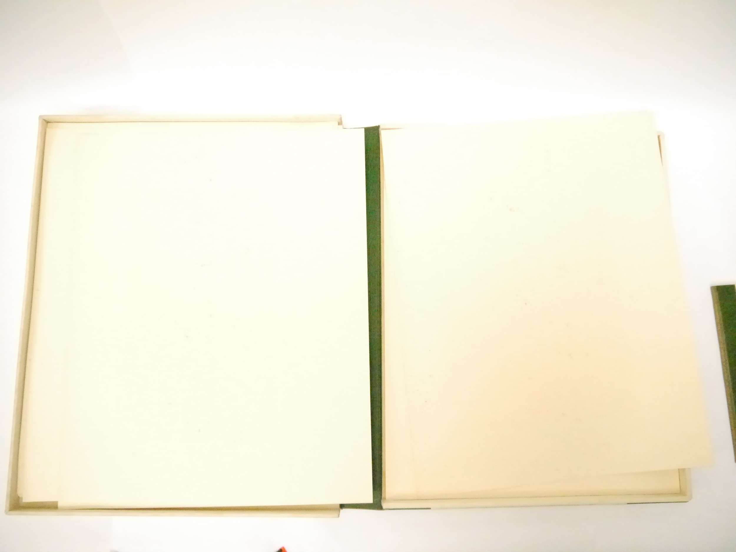 Inside of solander box, a bit of foxing/spotting, mainly to buckram of area surrounding the recess that the book sits in/slides into. Externally buckram with some spotting/foxing, some toning/grubbiness and marks in places. Green morocco elements rubbed & worn & a little faded in places. Please also see all extra images which hopefully illustrate the above and give clear idea of condition.