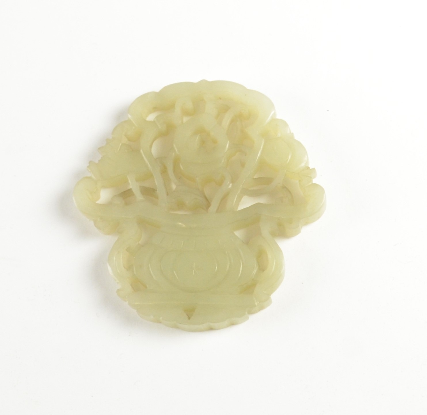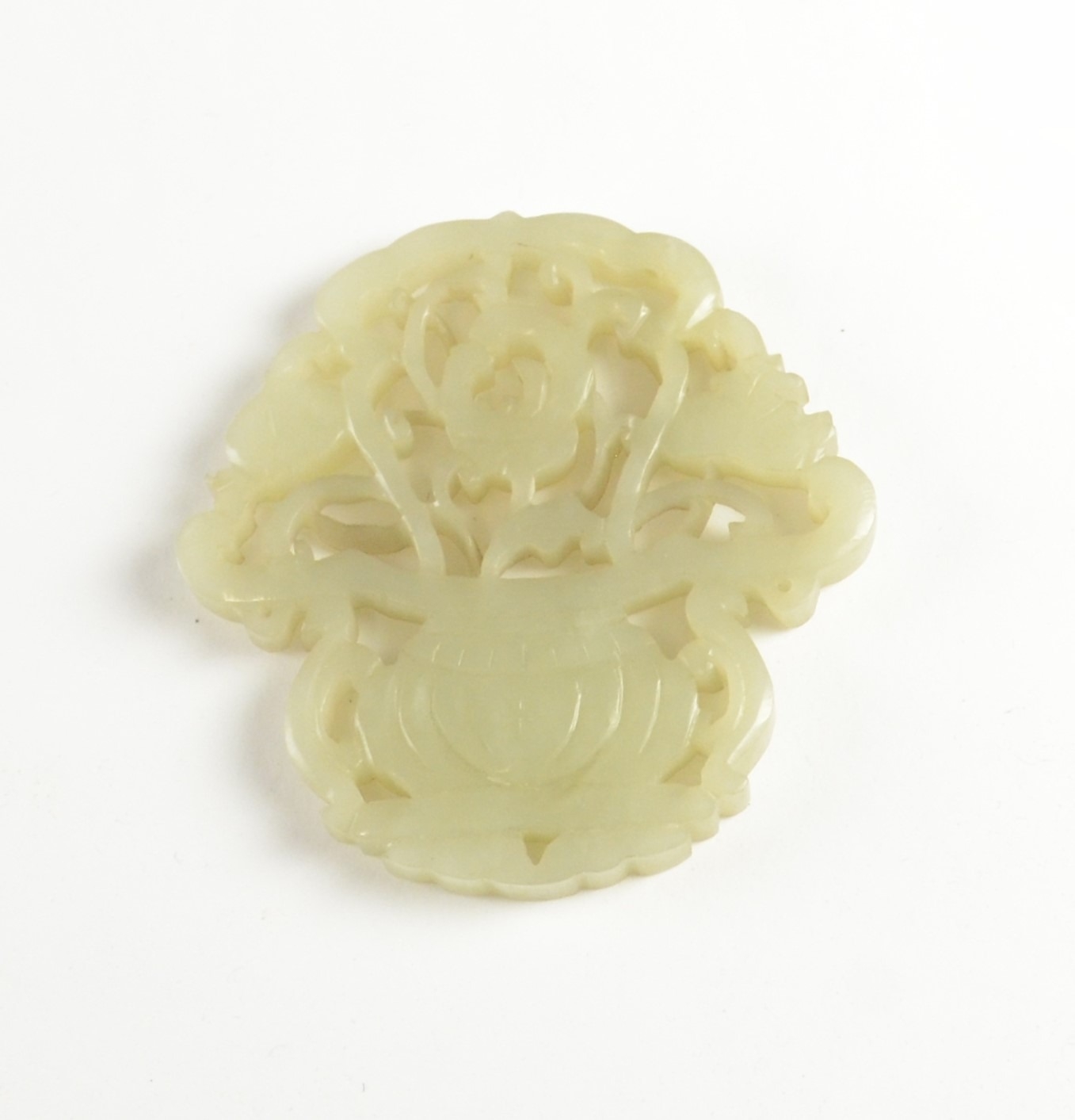 A Chinese reticulated carved jade flower basket6cm high x 5.7cm wideProvenanceHenry Potter Stevens Collection