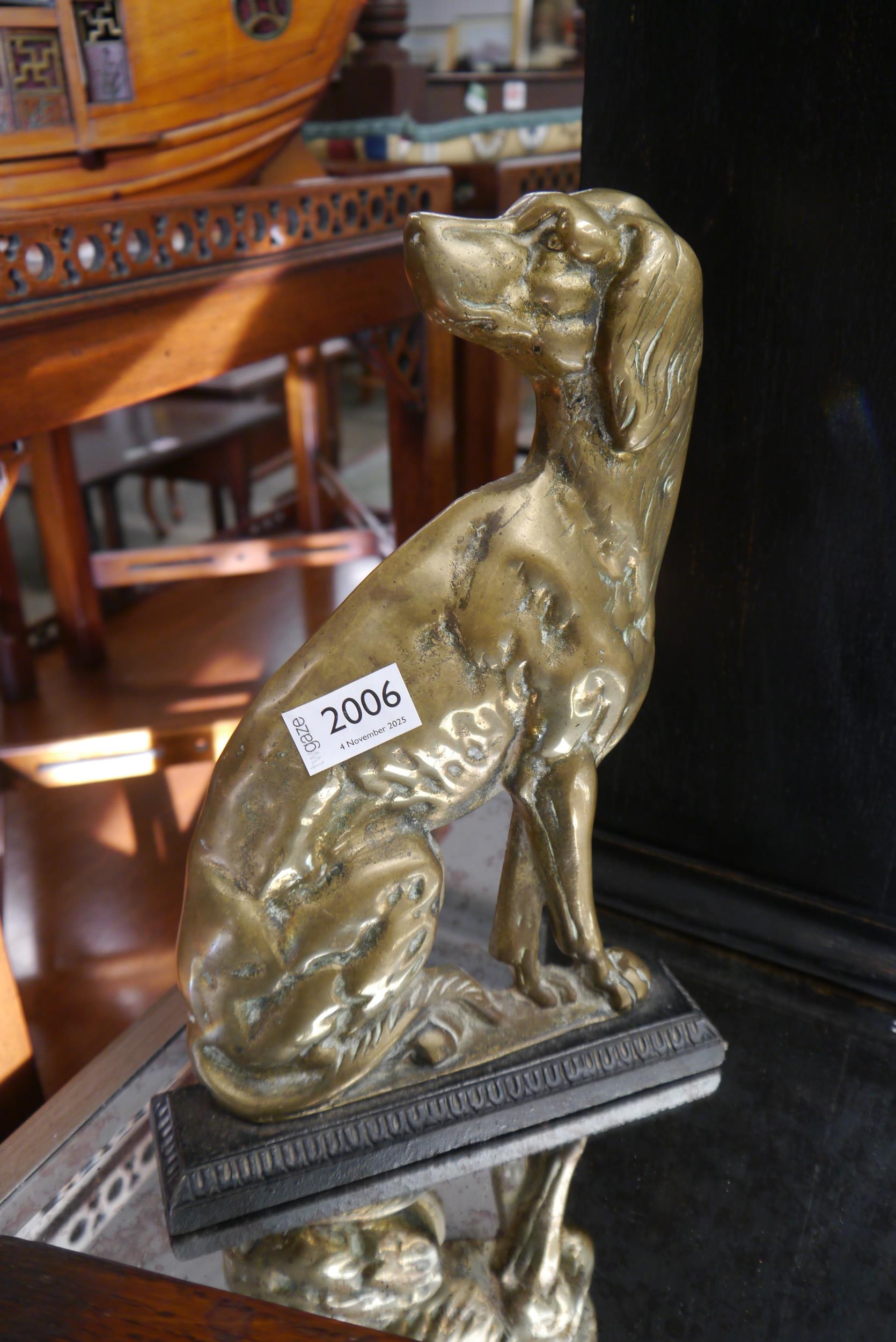 A cast iron and brass dog door stop