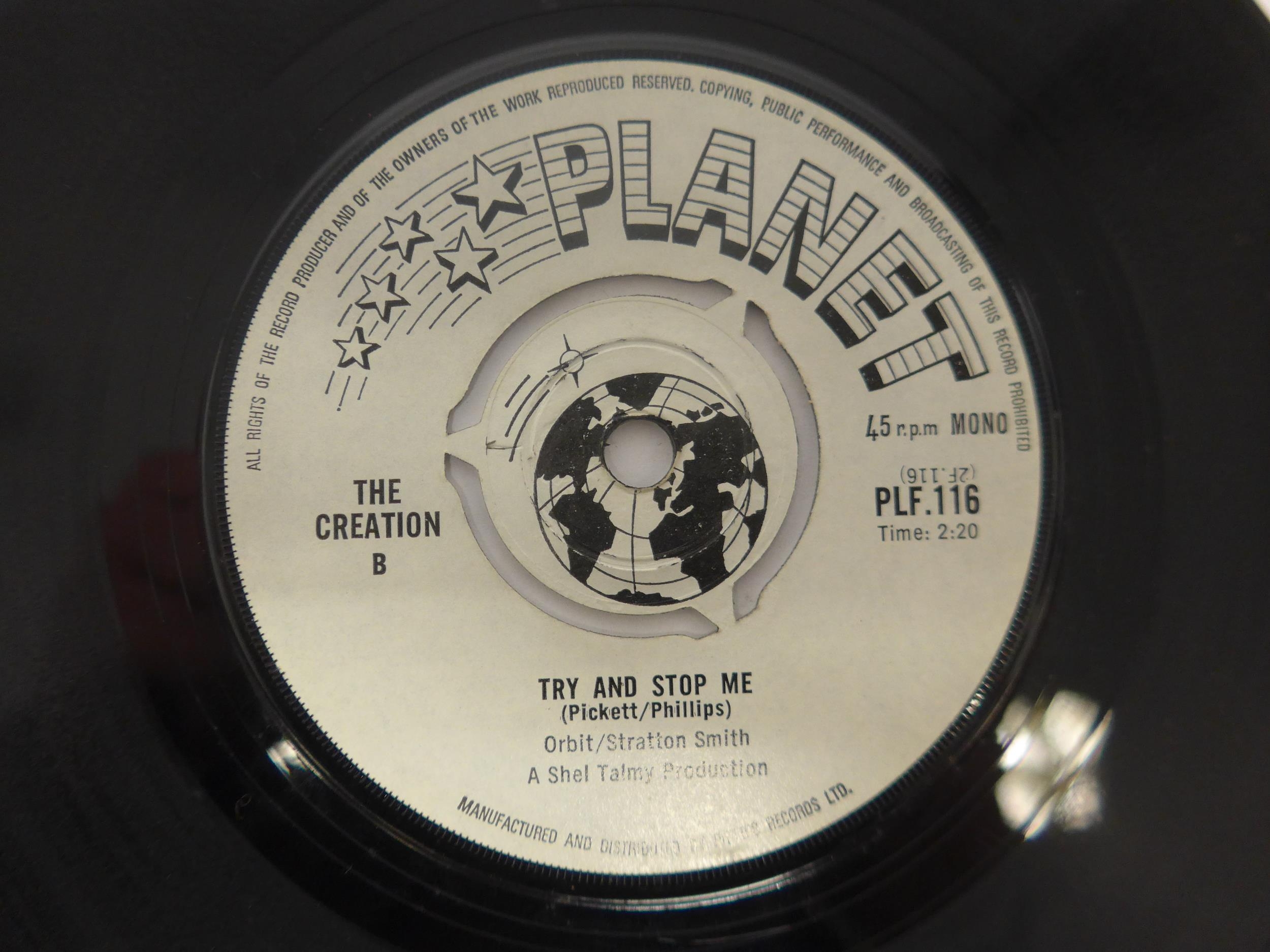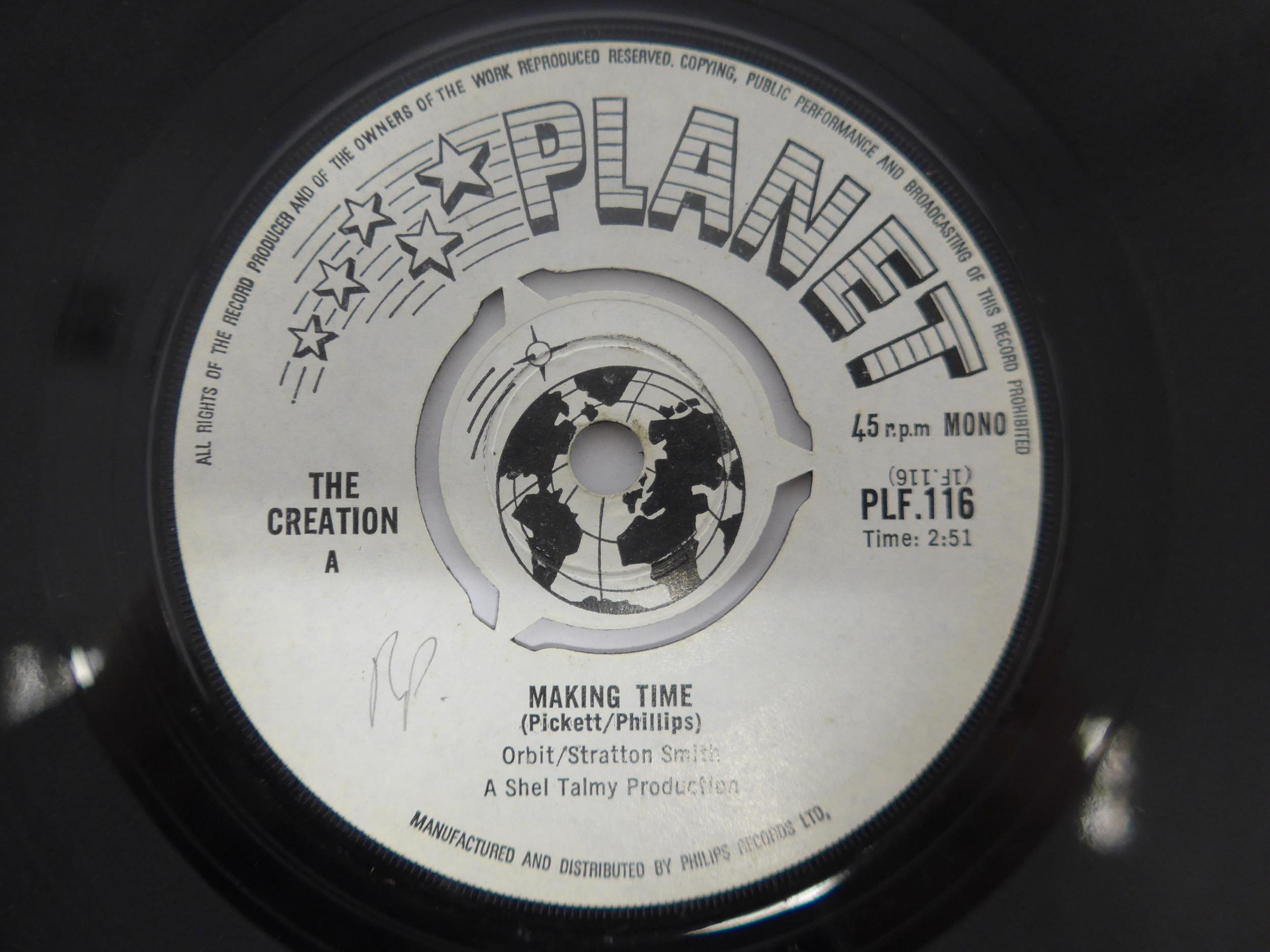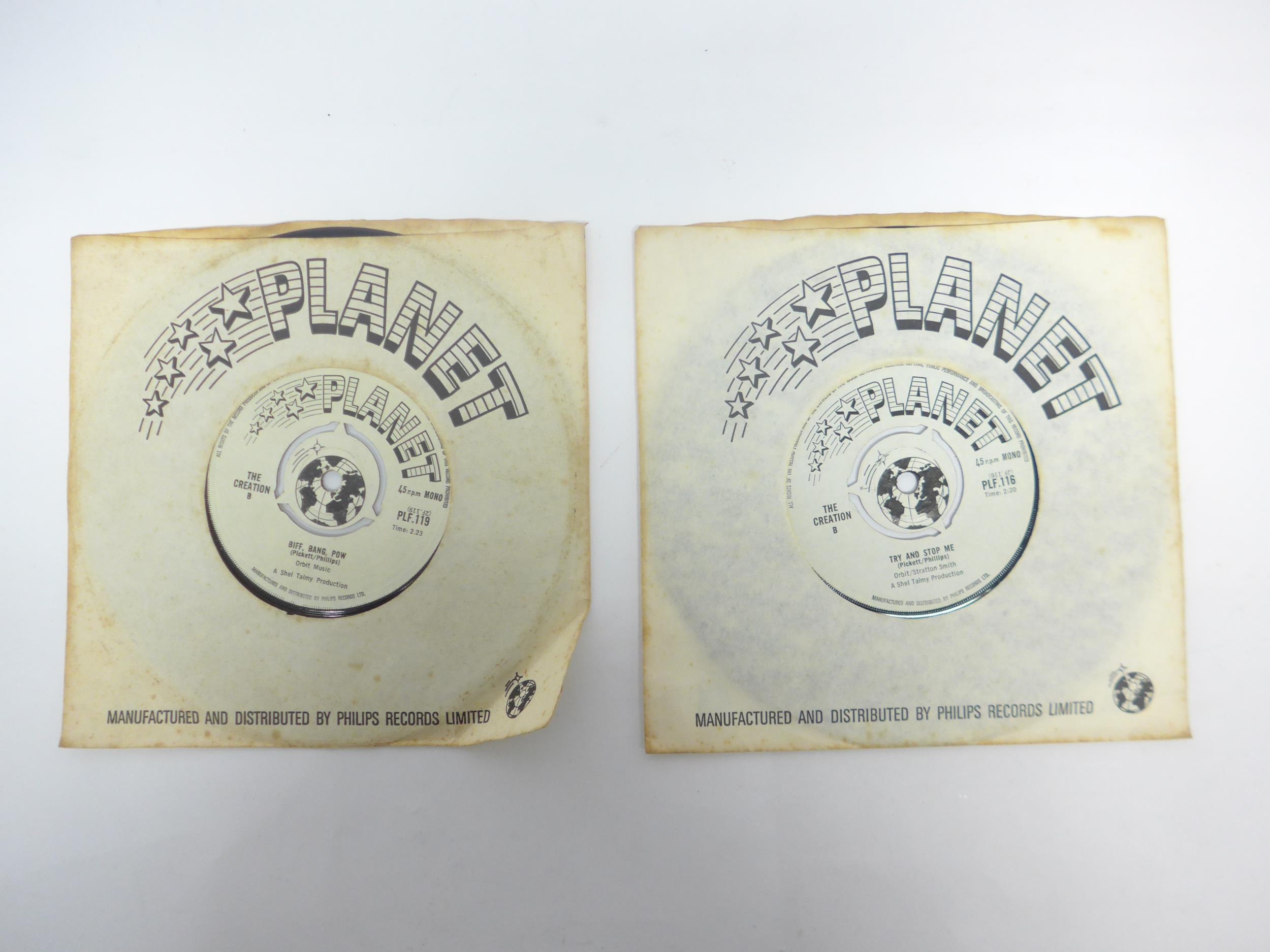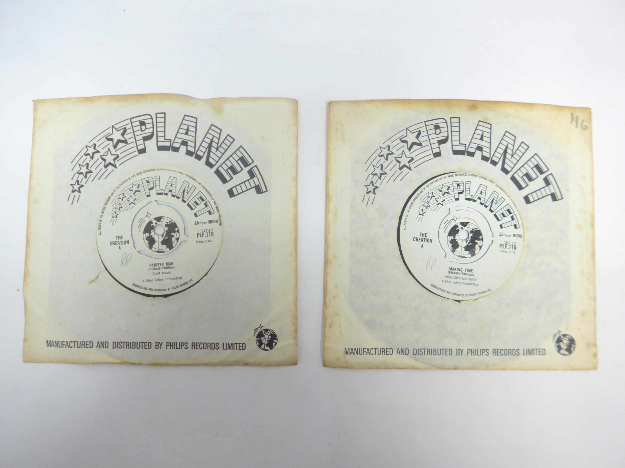 Psych / Mod - THE CREATION: Two original UK pressing 7" singles to include 'Making Time / Try And Stop Me' (Planet PLF.116, vinyl a strong VG nearing VG+, initials written in pencil to B-side label) and 'Painter Man / Biff, Bang, Pow' (Planet PLF.119, vinyl VG, initials written in pencil to B-side label) (2, housed in original Philips Planet sleeves)