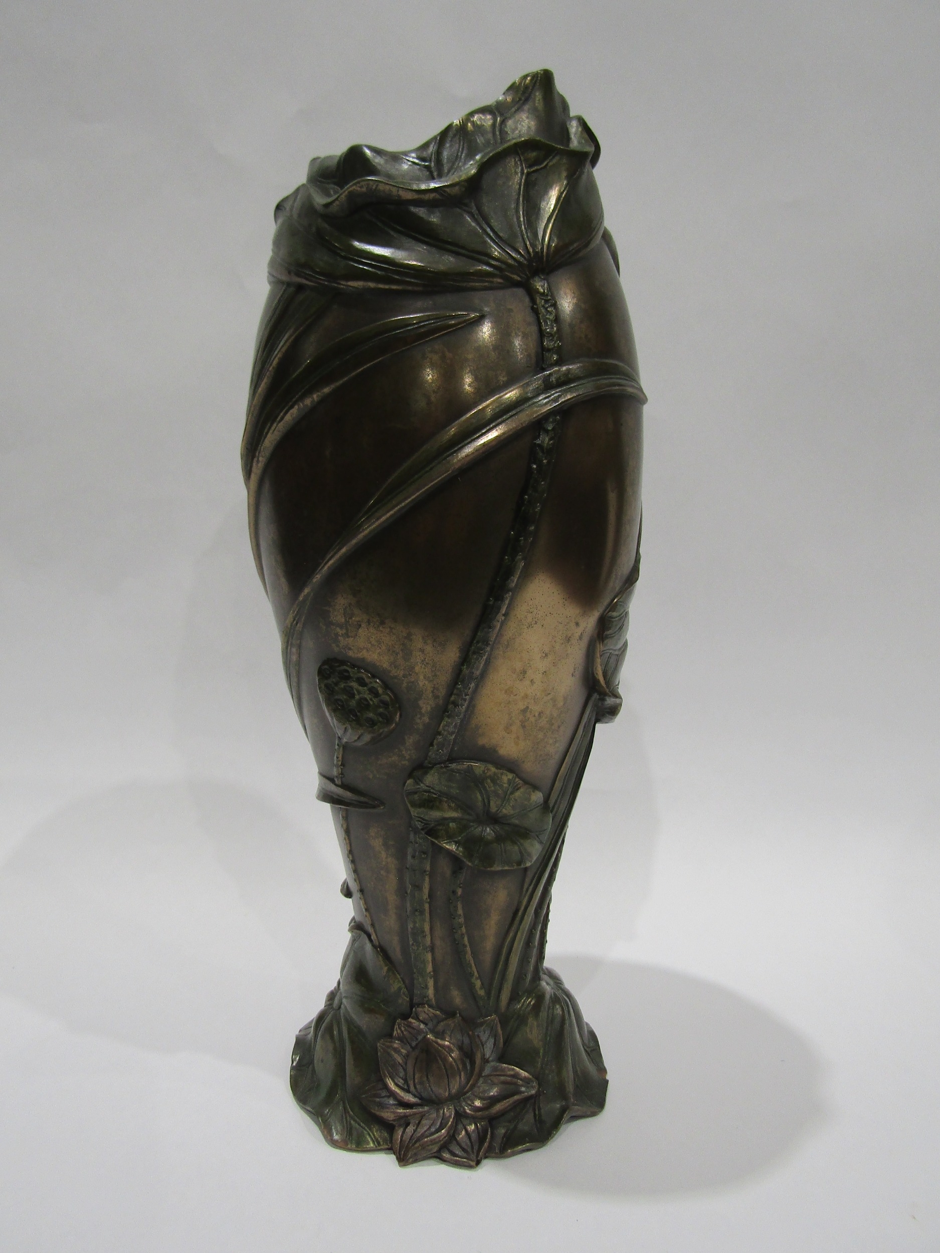 A Dragonfly and Lily pattern Art Nouveau style vase, 31cm tall