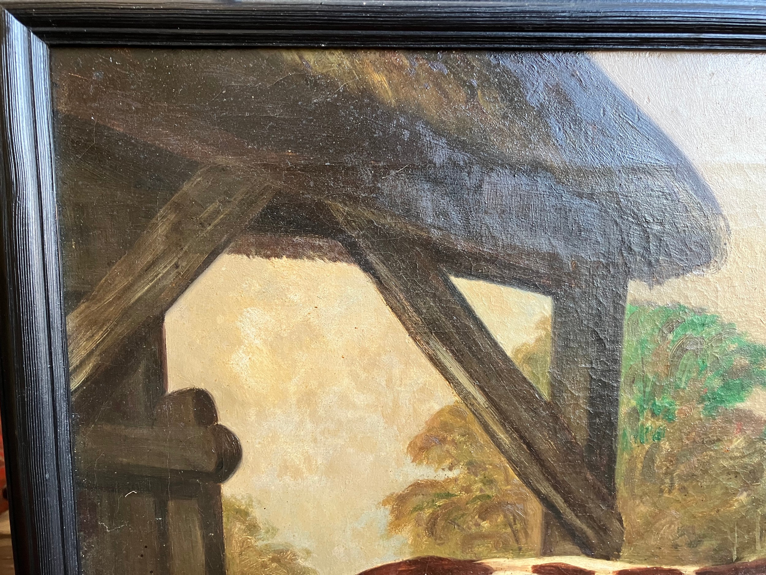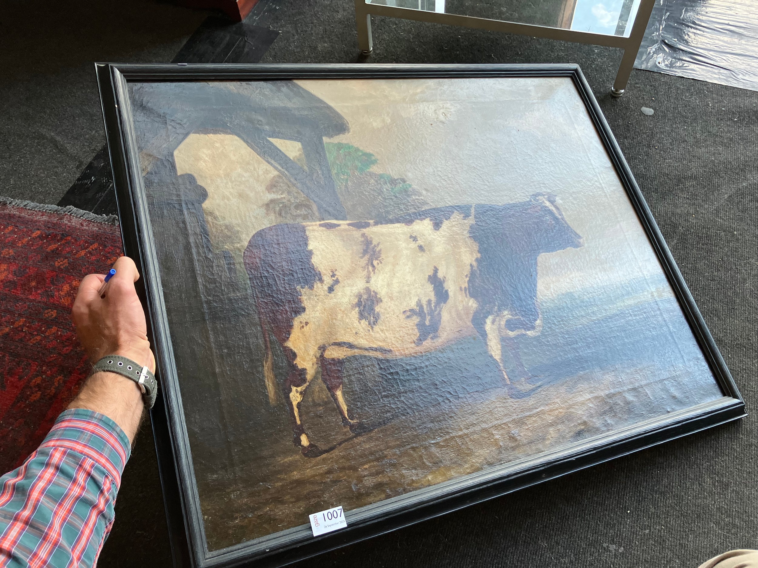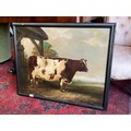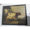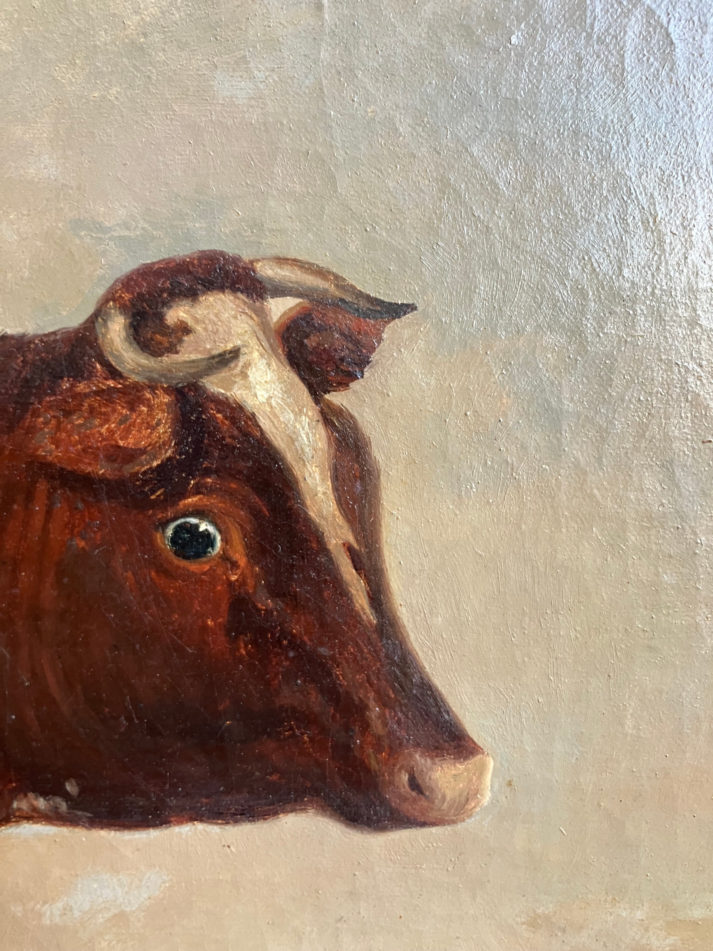 A 19th Century oil on canvas naïve study of a prize cow, unsigned, set in a later 20th Century frame, old repairs verso. 60cm x 75.5cm image size