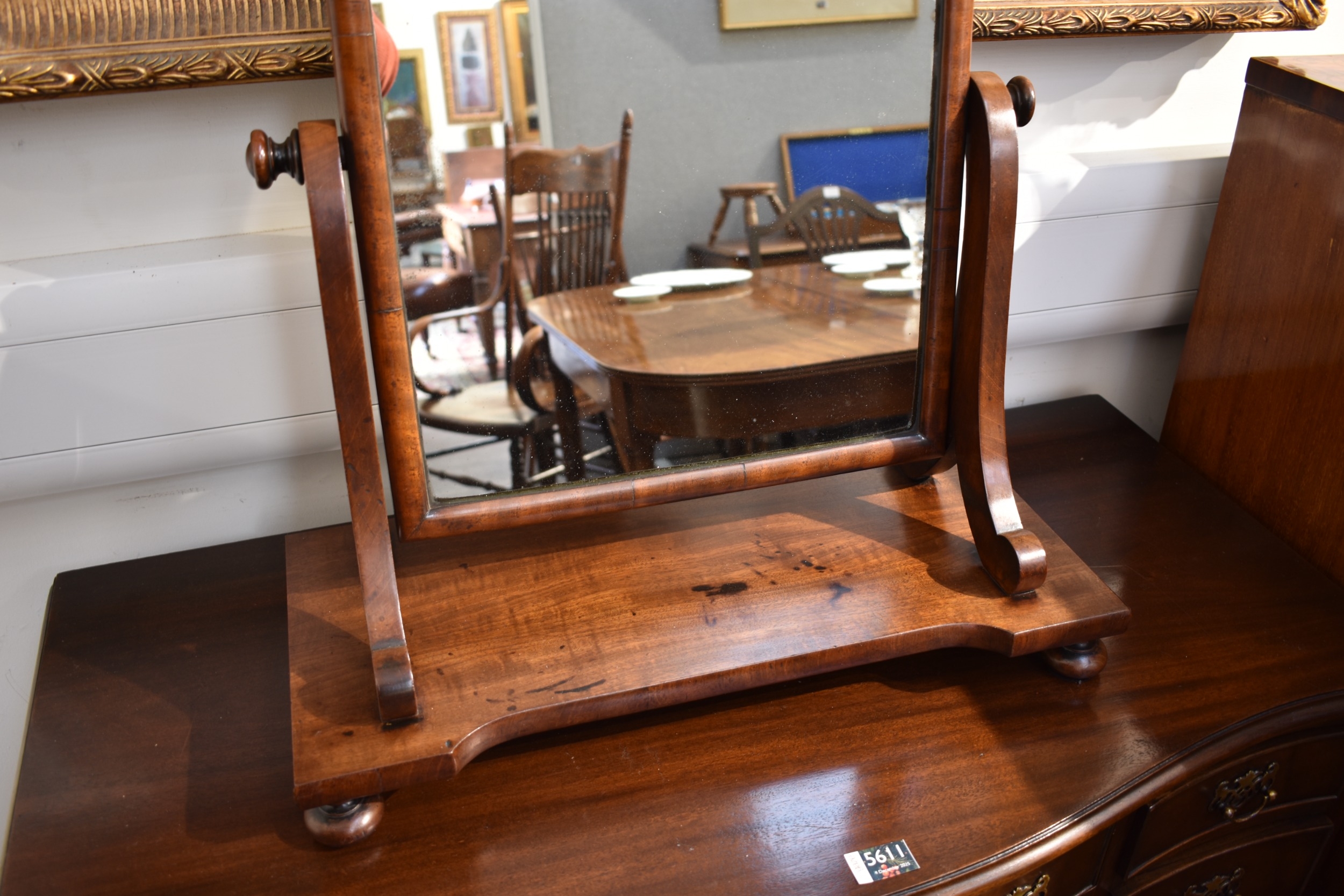 A George III mahogany dressing chest tilting mirror on bun f...
