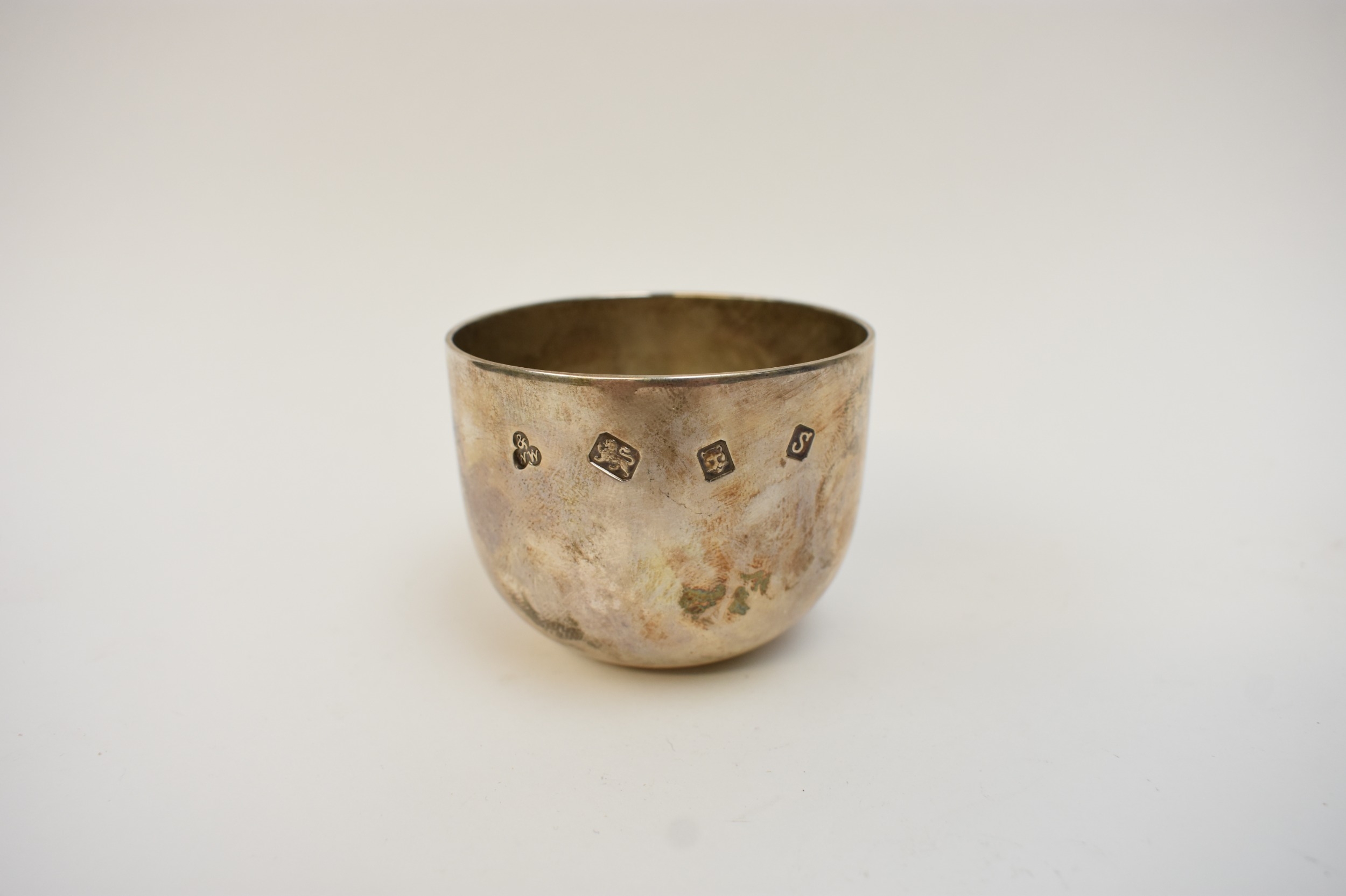 A Wakely & Wheeler, London, silver tumble cup, London 1973, 5cm tall, 6.4cm diameter, 120g