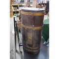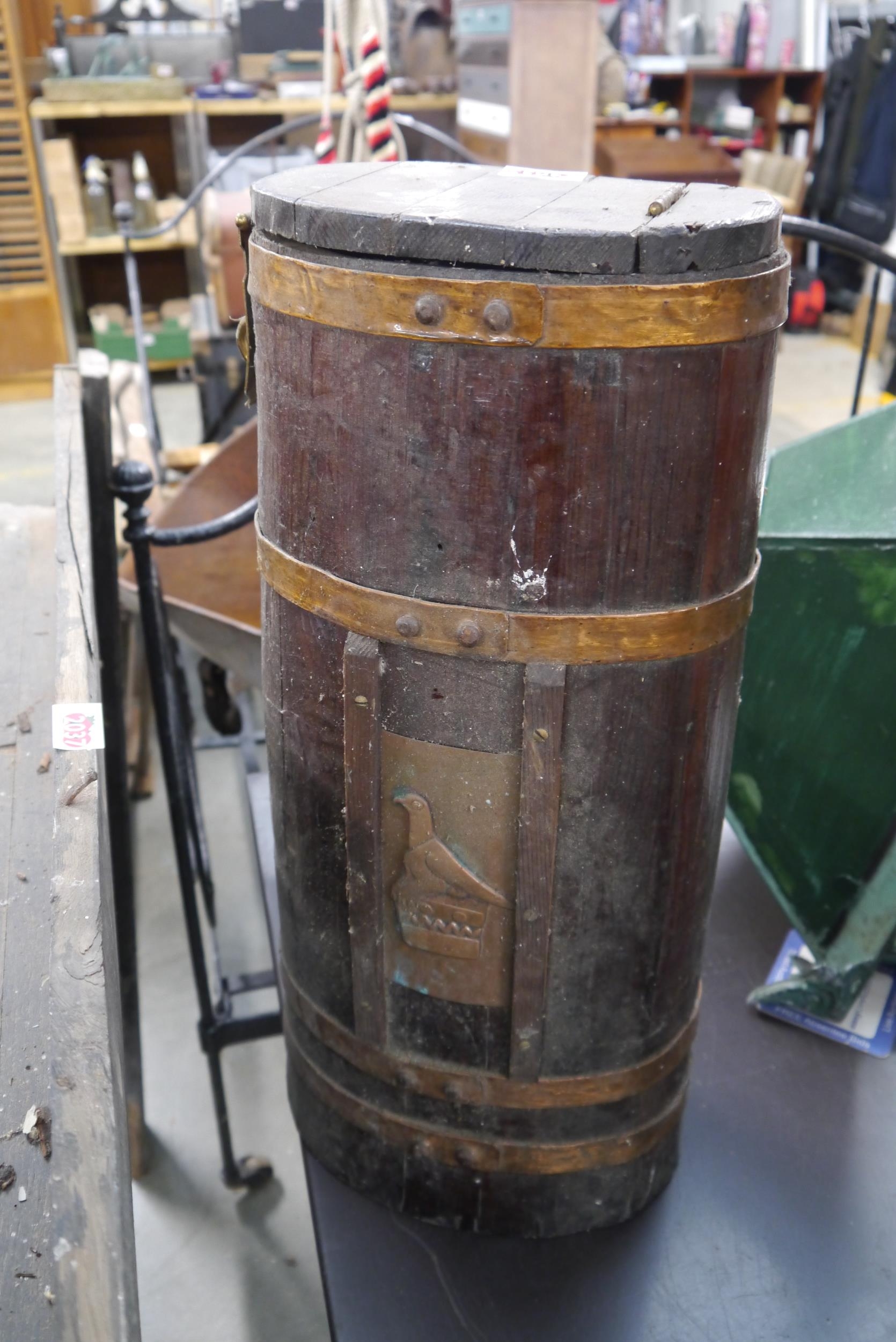 A pine bound lidded barrel with copper eagle design