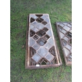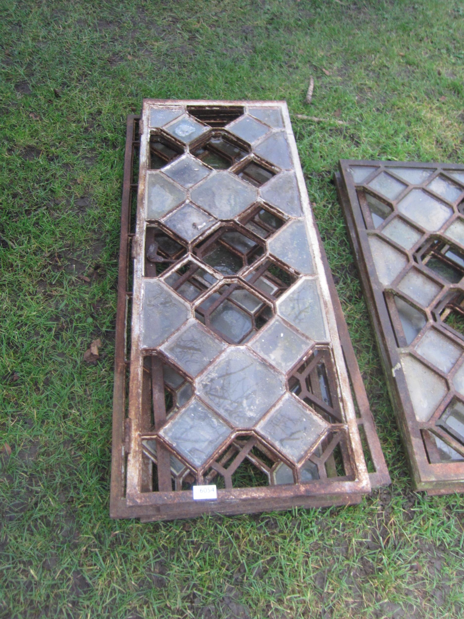 Four cast iron diamond pattern window frames, 115cm x 43cm