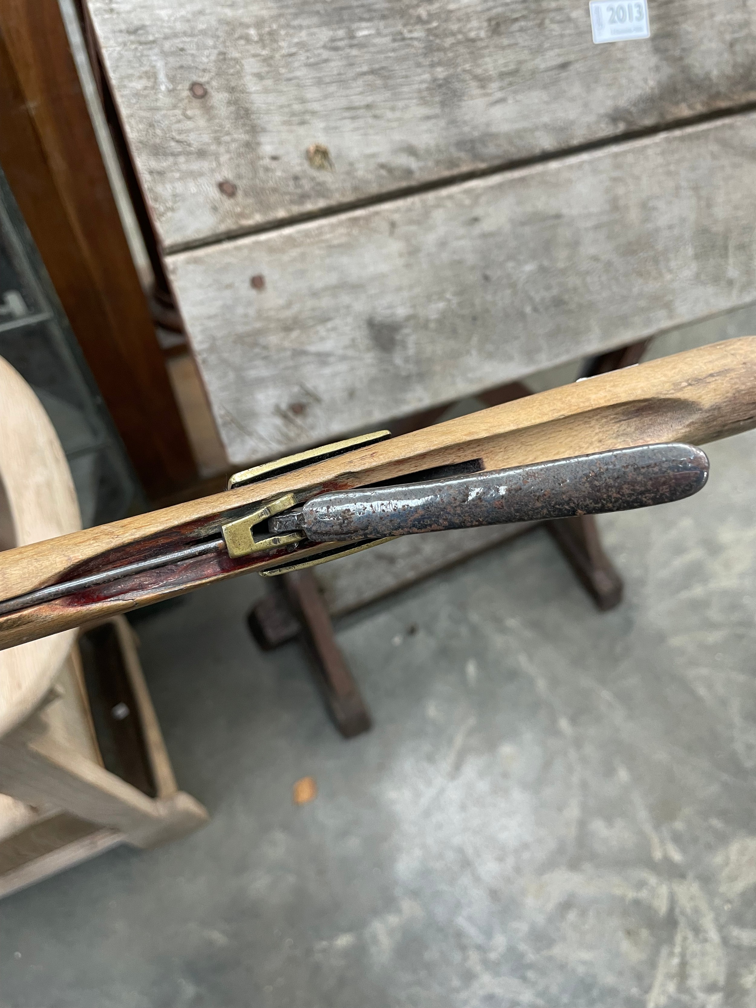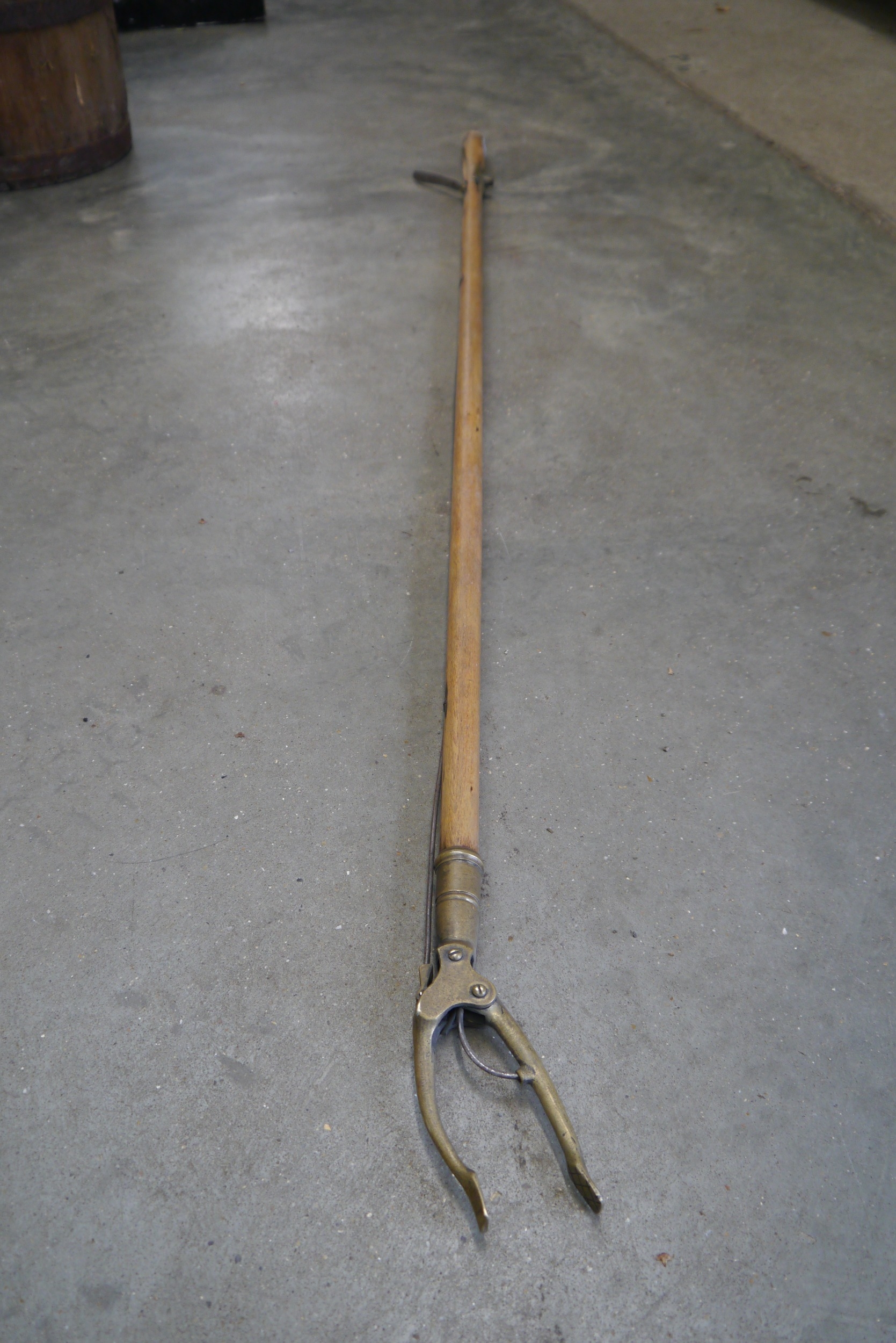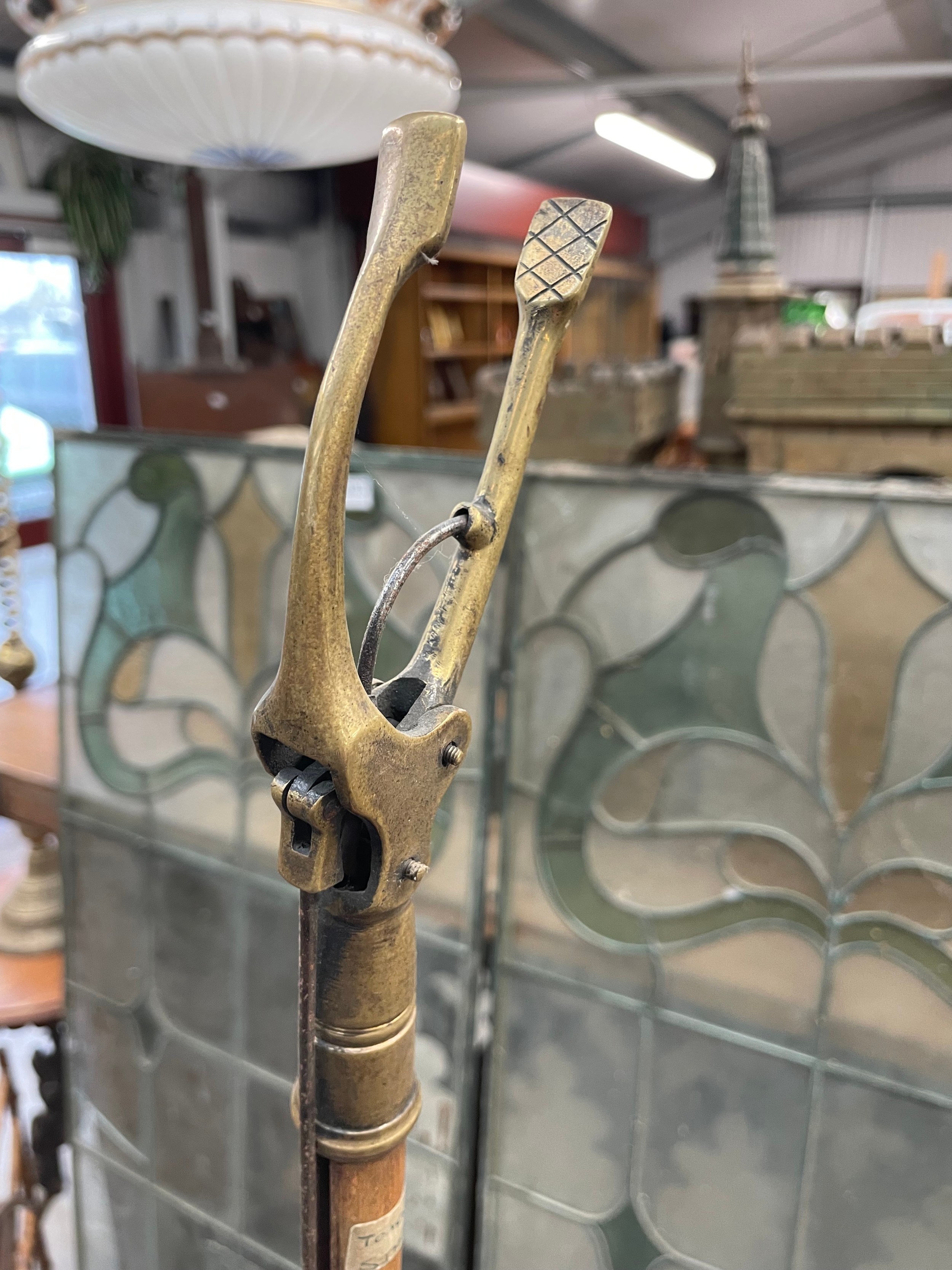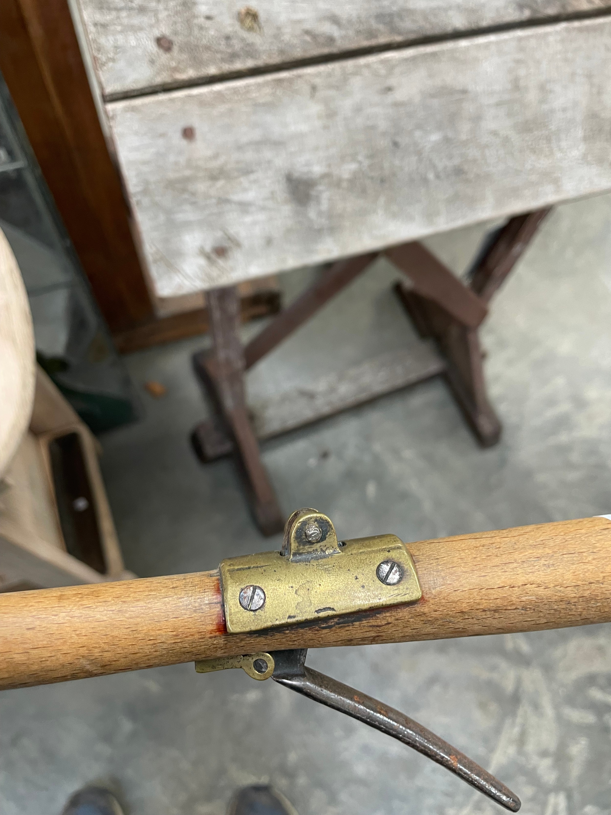 Measures 123cm, mechanism does work, there is a bit of movement/wobble in the handle mechanism. Wear to end of the handle.