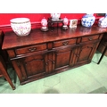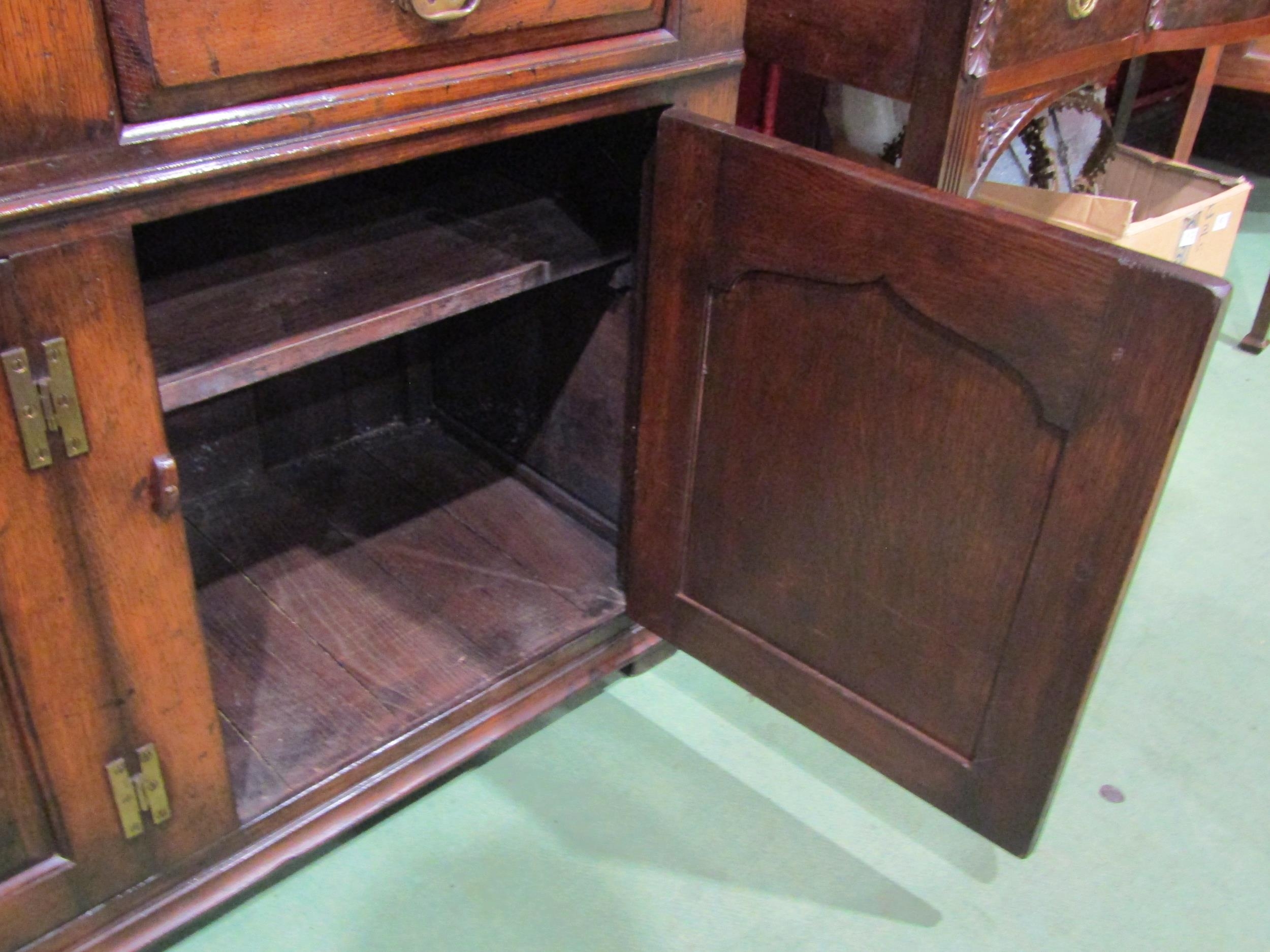 An 18th Century revival oak dresser base with three drawers over three door cupboards having fielded panel decoration, 84cm tall x 169cm wide x 53cm deep