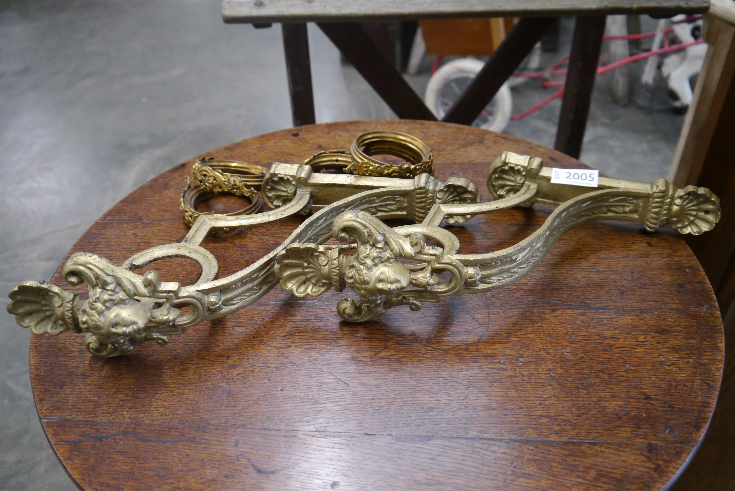 A pair of curtain rail brackets and rings