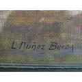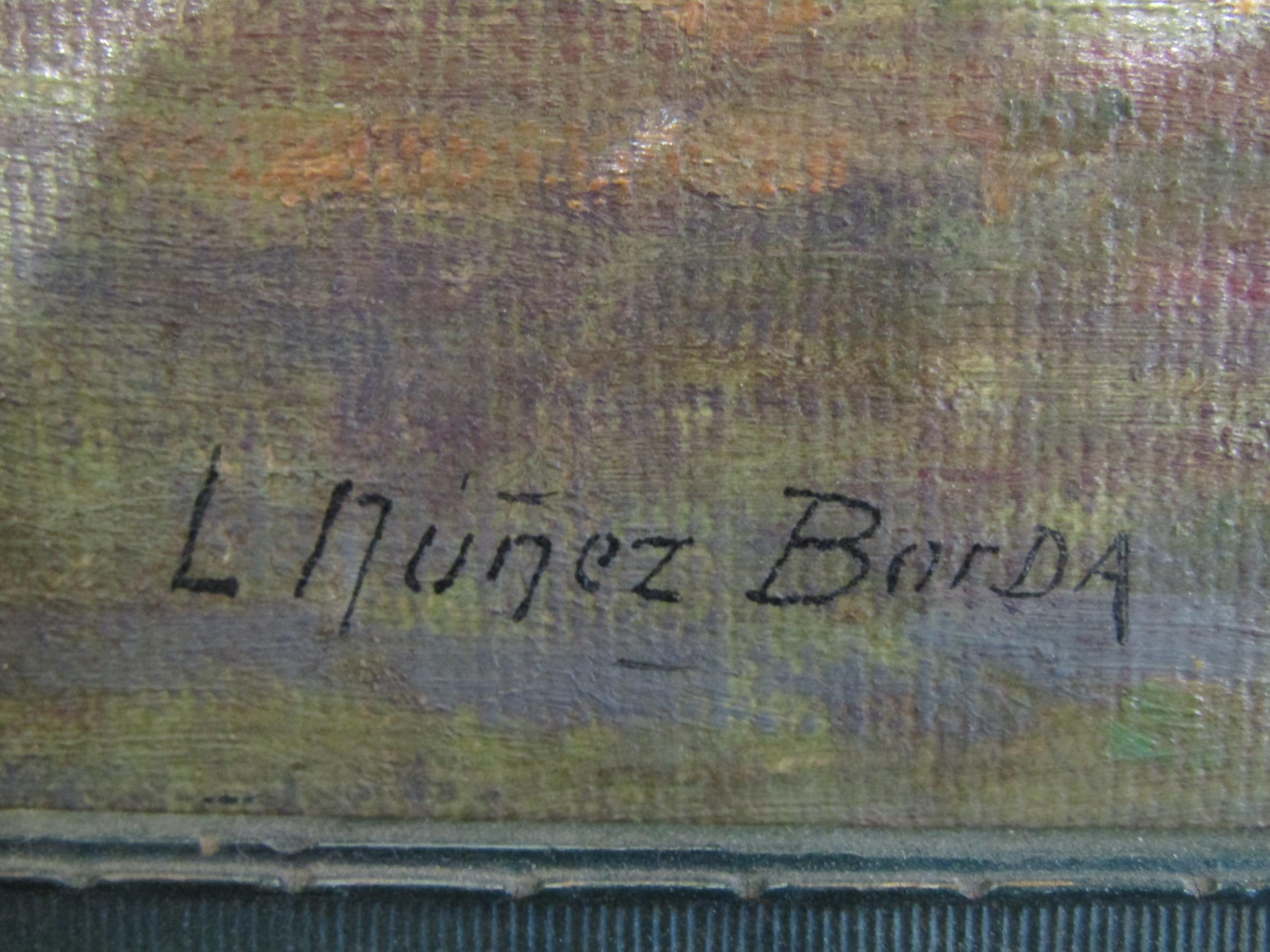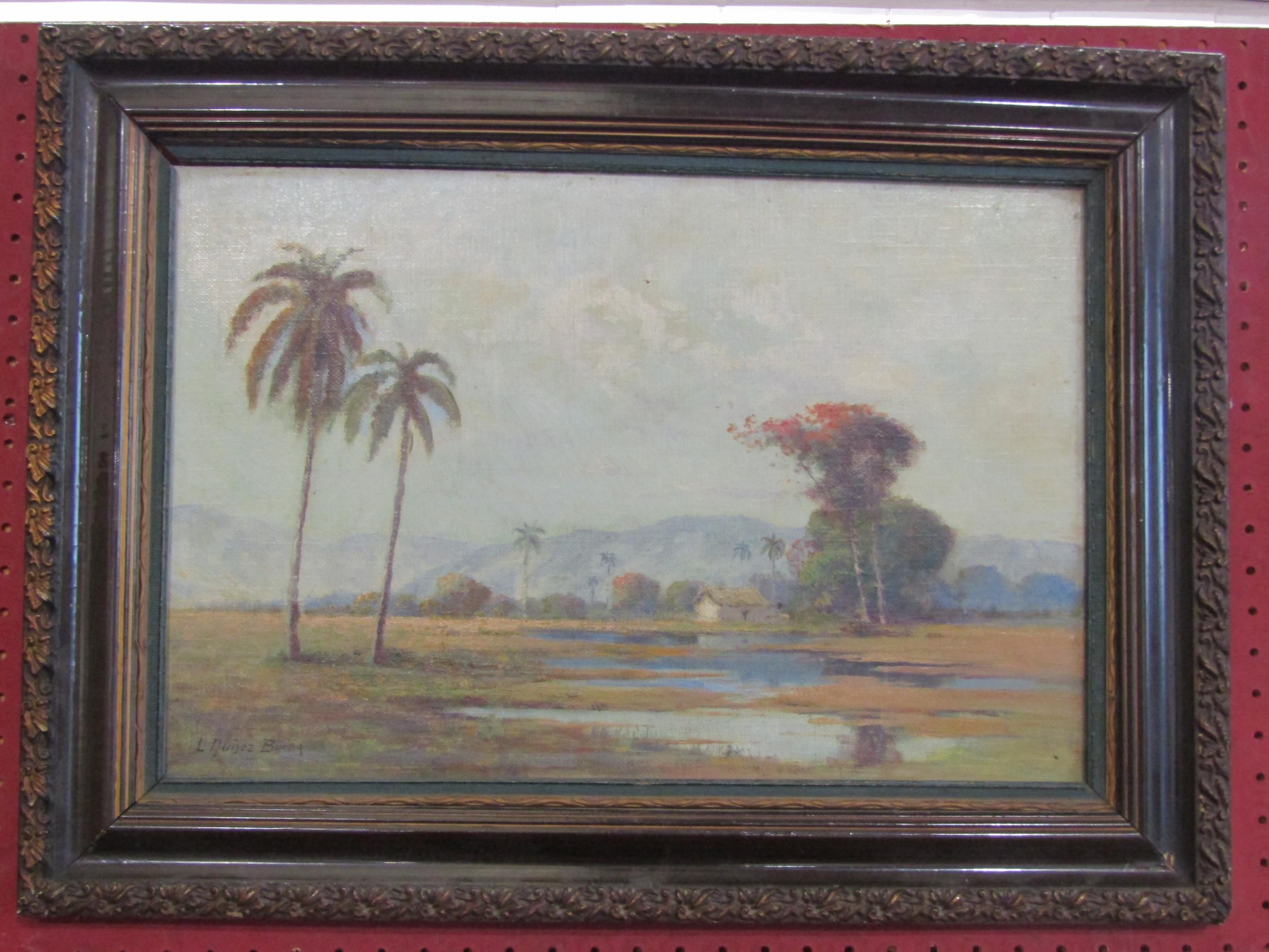 LUIS NUÑEZ BORDA (1872-1970): An oil of waterlogged landscape, signed lower left, framed, 27cm x 41cm image size