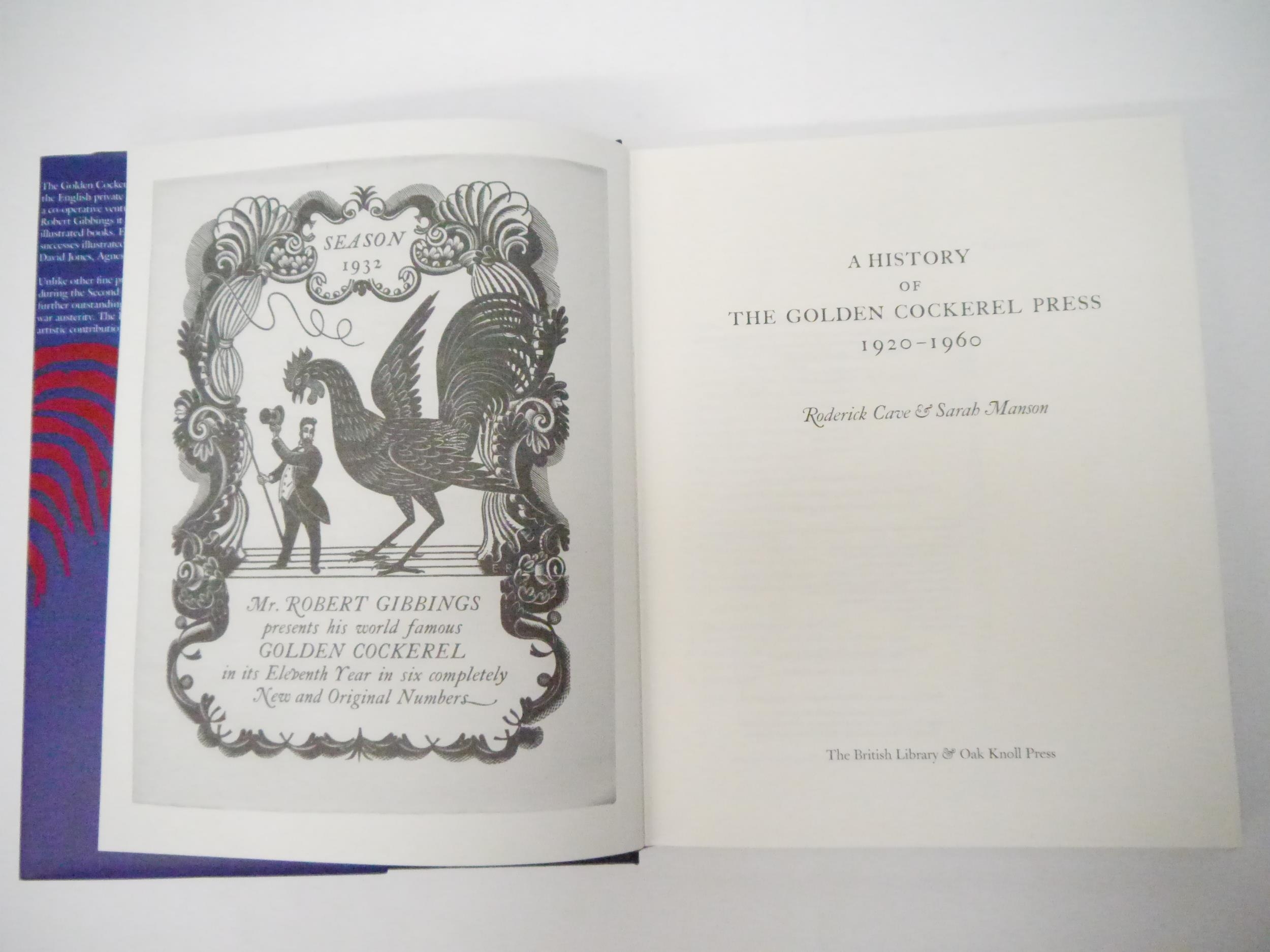 GOLDEN COCKEREL PRESS. ‘The History of the Golden Cockerel Press 1920-1960’, by Roderick Cave & Sarah Manson. Published by The British Library & Oak Knoll Press in 2002. A First Edition. Hardback - blue cloth covered boards with lettering in gold. Dustwrapper. 290 pages. Well illustrated throughout in colour and black & white. 29 x 22 cm. In Fine Condition.
