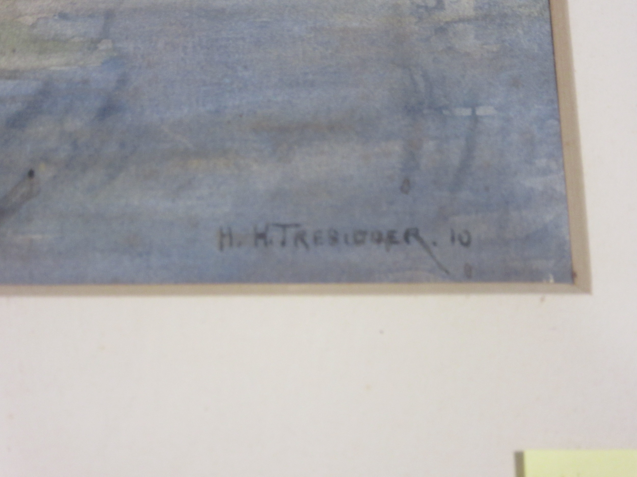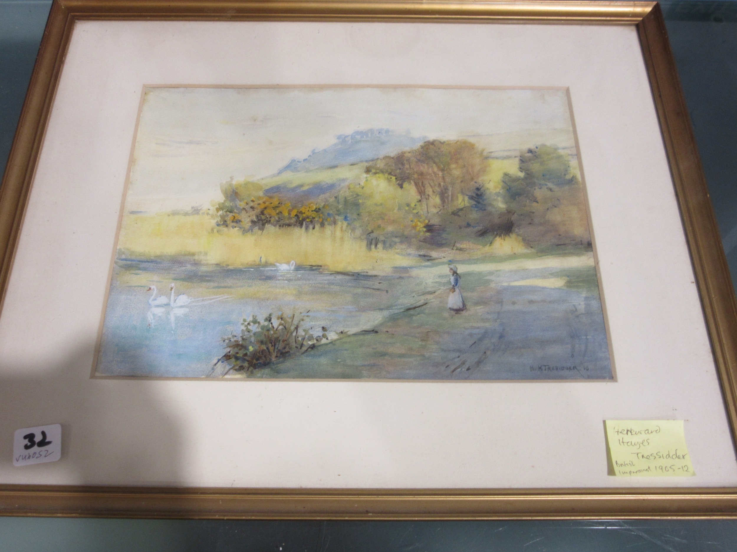 HEREWARD HAYES TRESIDDER (1883-1950) A framed and glazed watercolour, figures by a lakeside with Swans. Signed bottom right and dated '10. Image size 25cm x 35cm