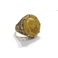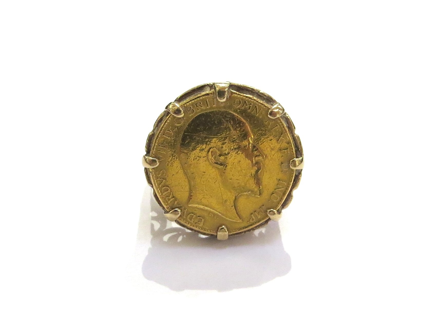 A 1902 Edward III gold half sovereign in 9ct gold ring shank...
