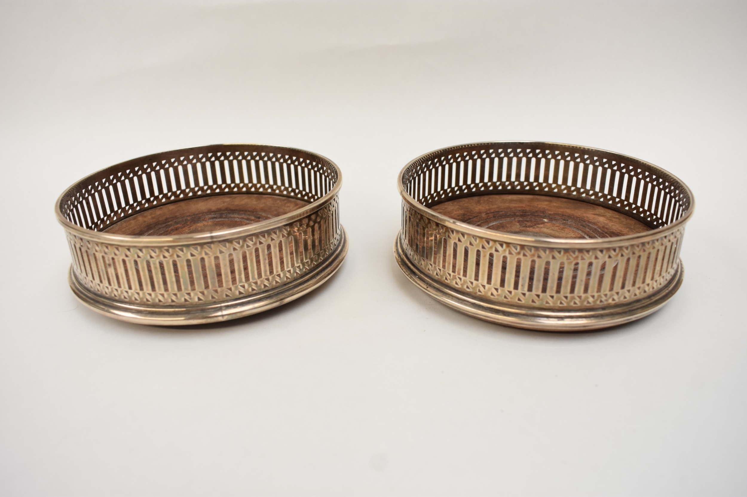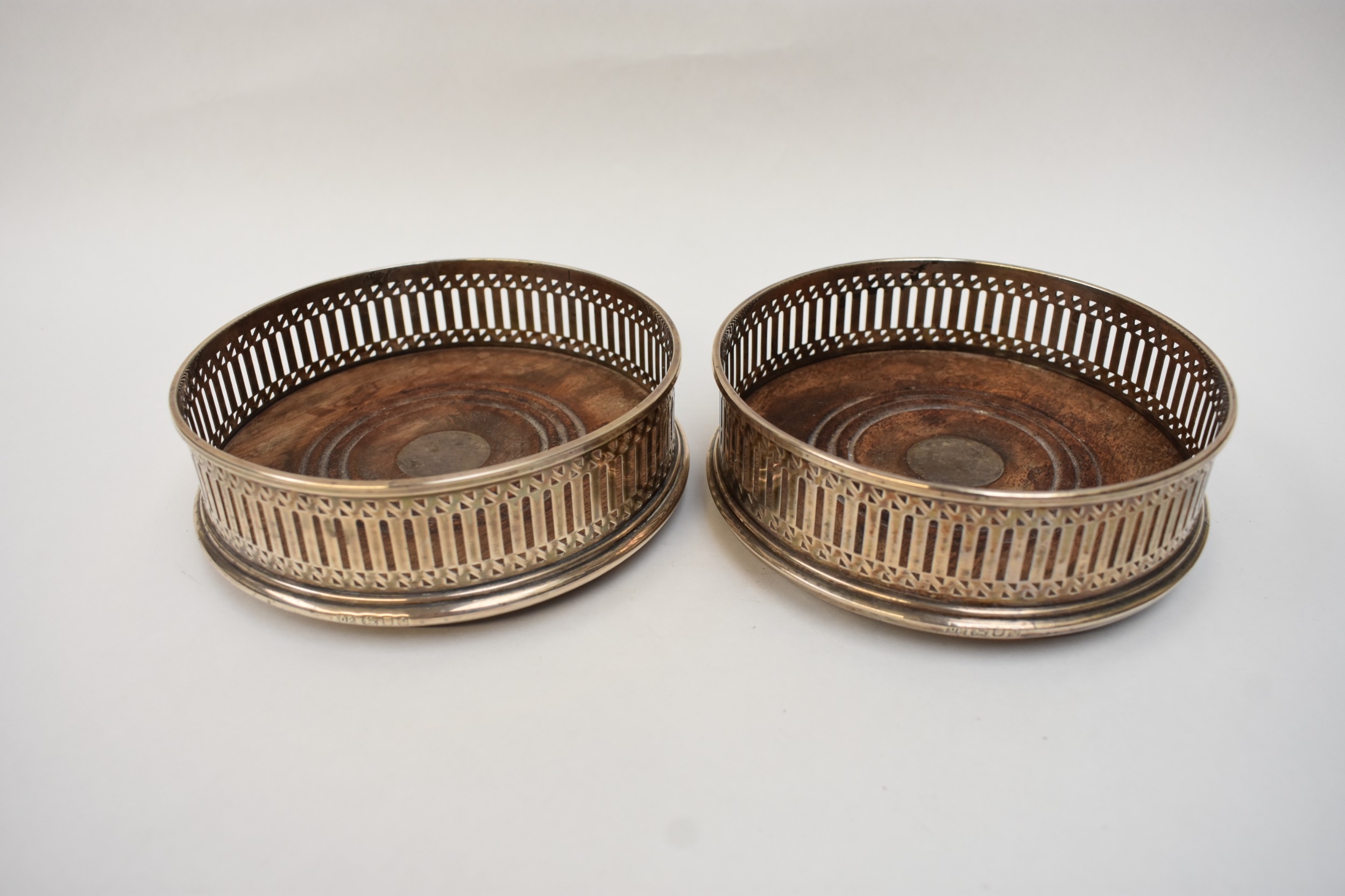 A pair of silver coasters by Douglas Pell Silverware, London...