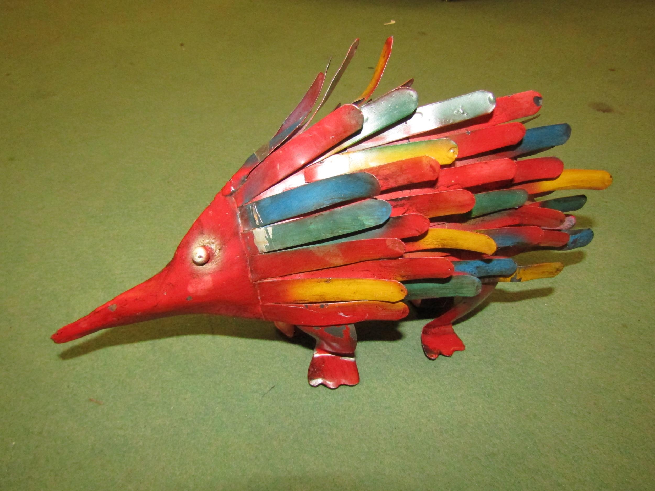 A tin plate model of a lion together with a painted model of a Porcupine, tallest 17cm (2)