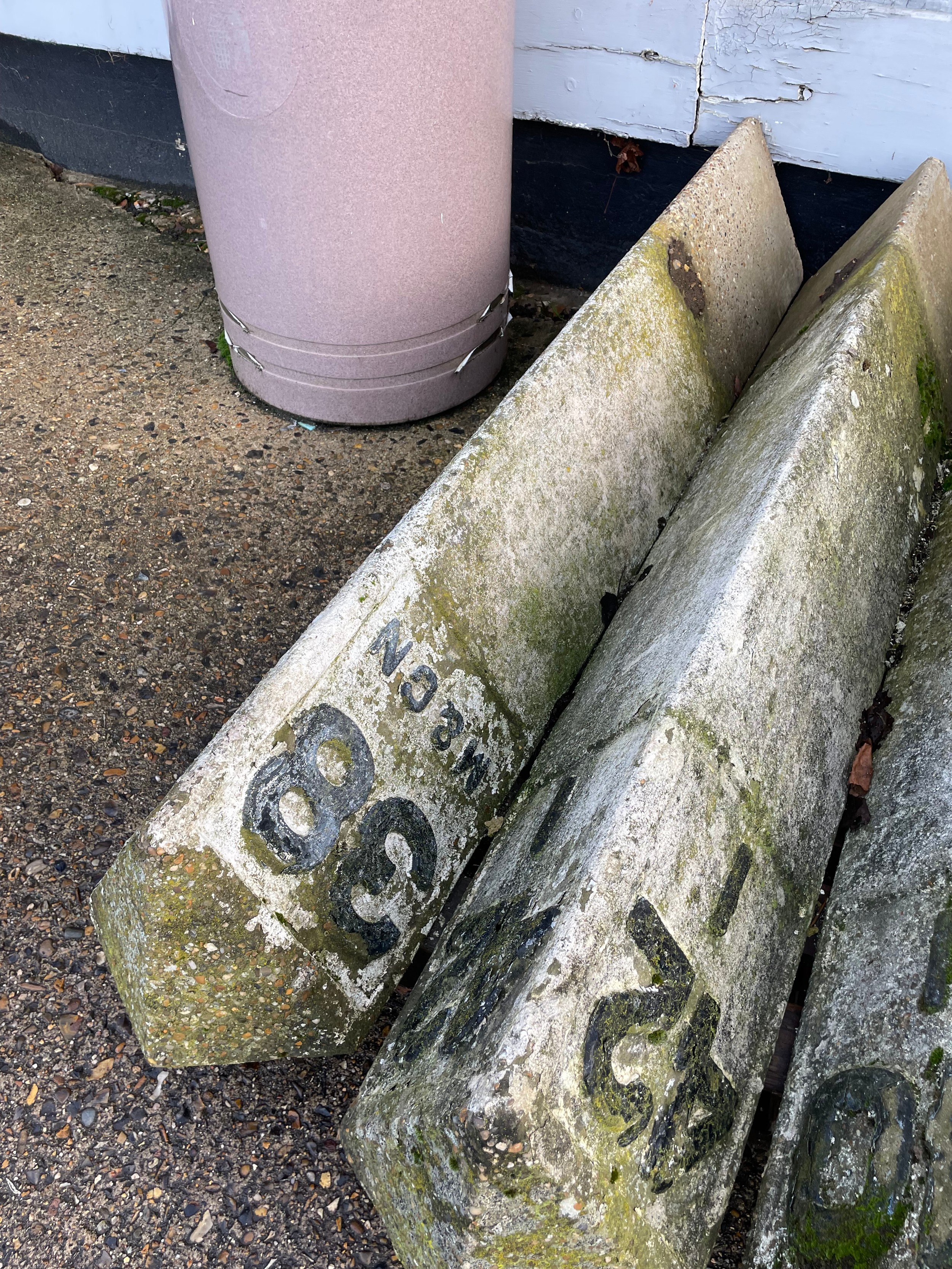 A concrete triangulated railway mile marker 38 M&GN, 152cm tall