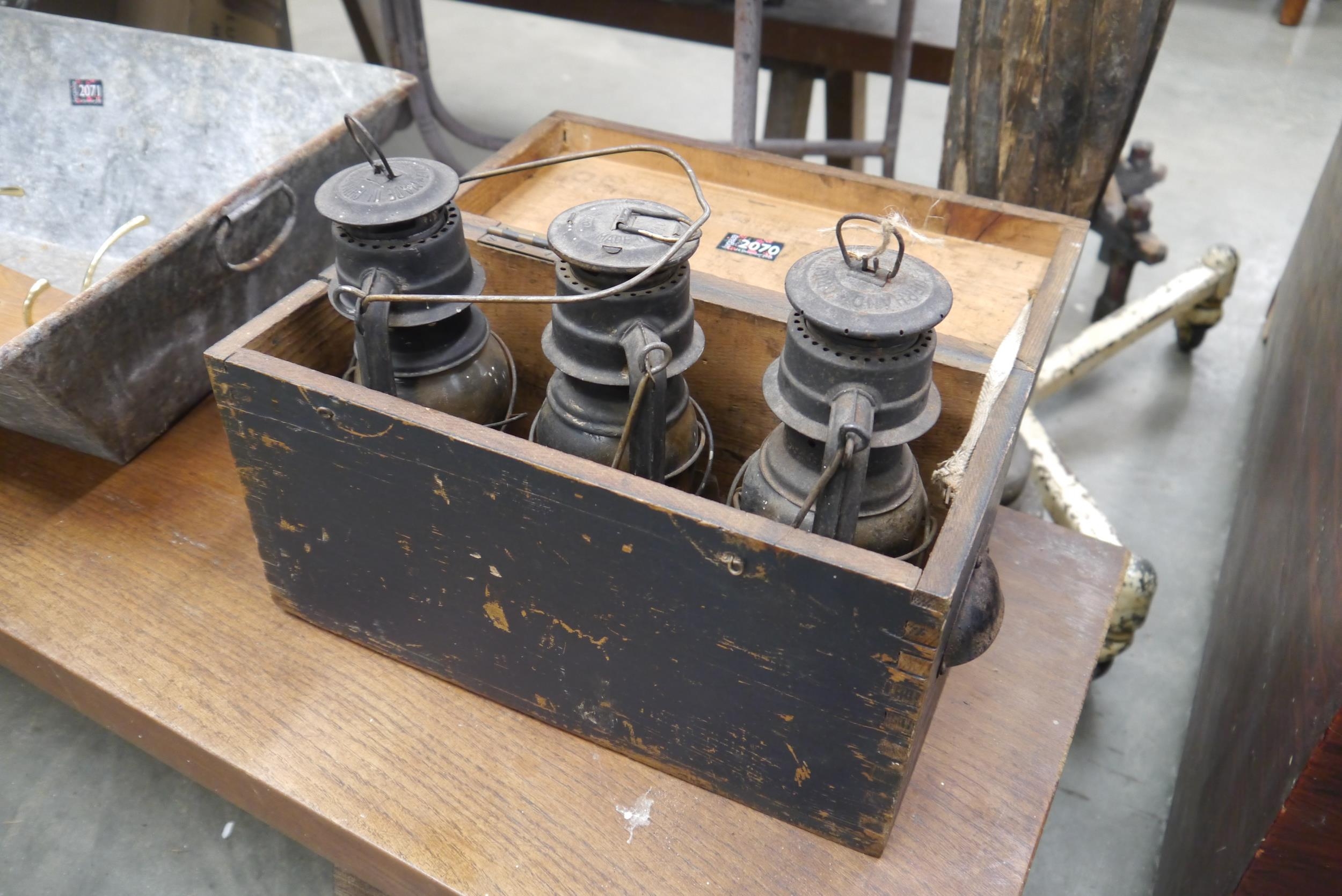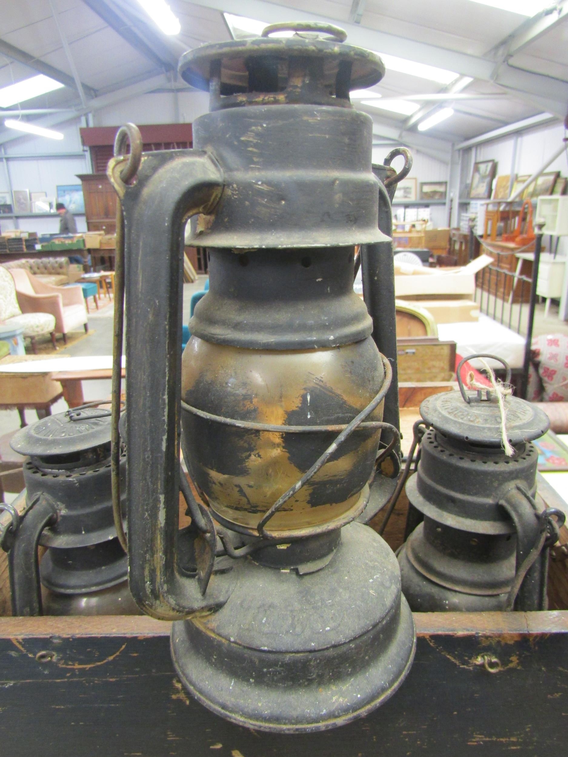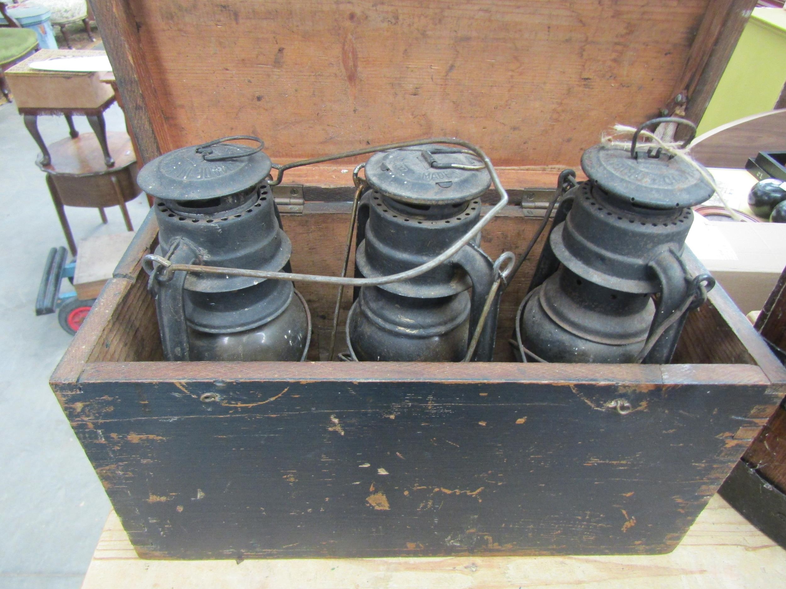 Three German mining lanterns Feuerhand in fitted case
