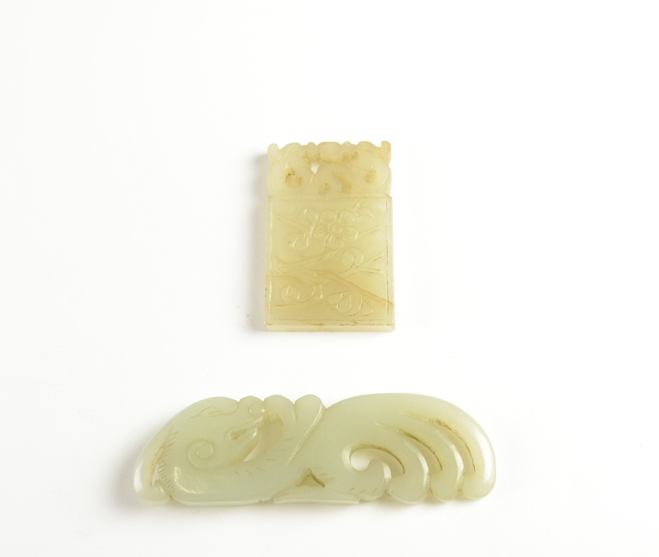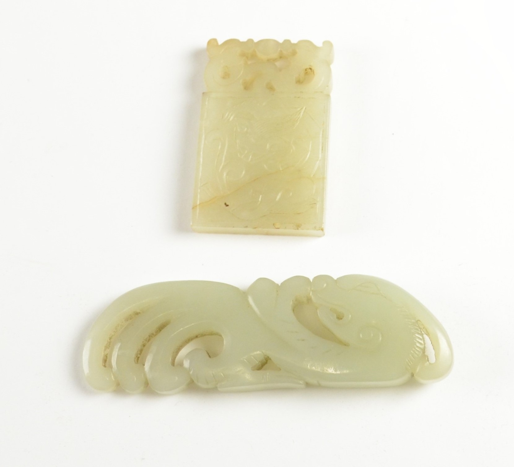 A Chinese carved jade plaque (a/f) together with a kirinKirin 7.5cm wideProvenanceHenry Potter Stevens Collection